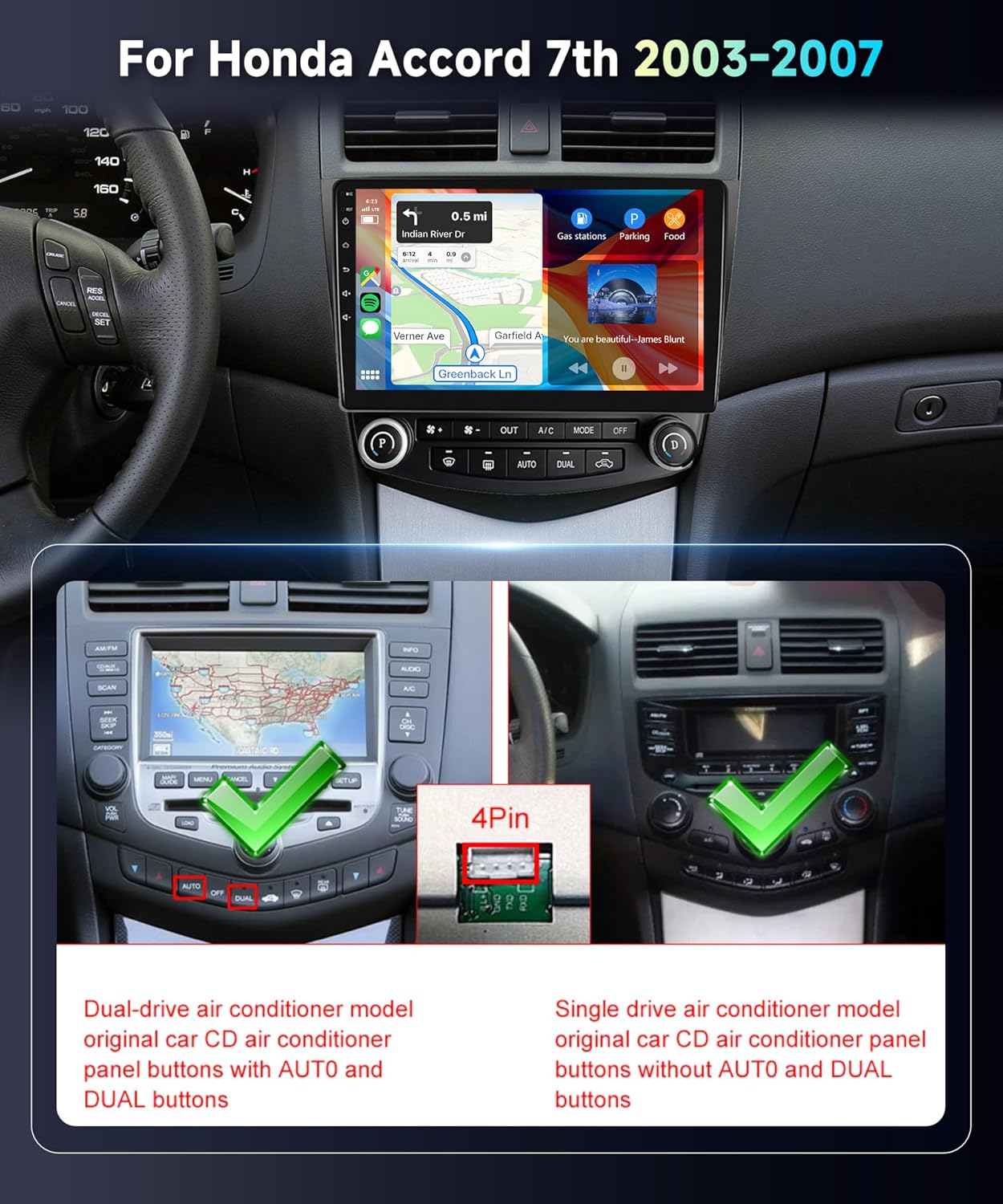 【For Honda Accord 7th Car Radio】 The Android Car stereo fits for Honda Accord 7th 2003 2004 2005 2006 2007 radio,package contains frame accessories and installation tools,plug and play.Before purshasing,please check your car models/years/shape of center console.If you have any question,please tell us via Amazon