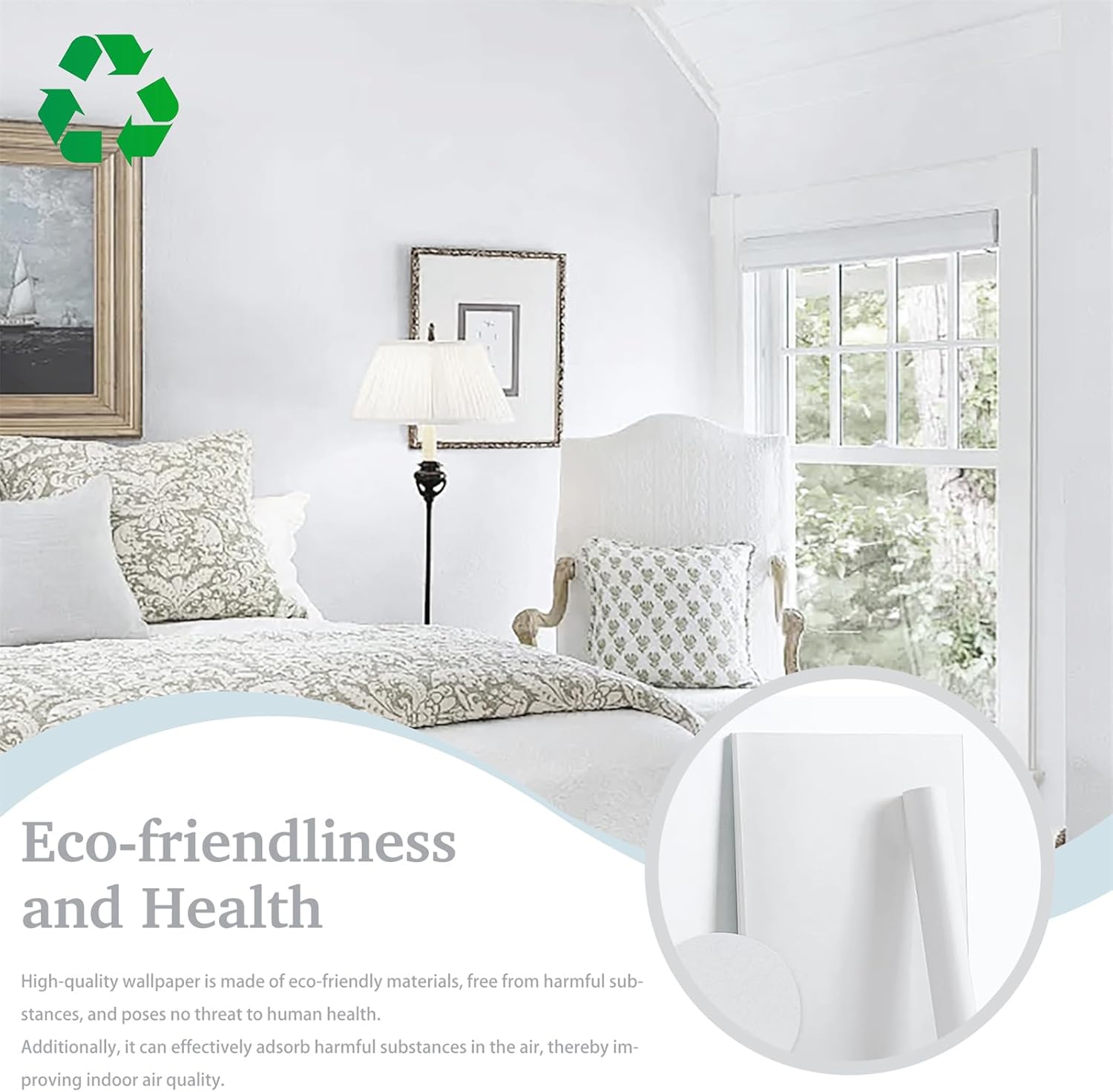 [SIZE] L9.84xW1.47ft/118inx17.7in, covers 14.47 sq.ft [COLOR] -White [MATERIAL] -Vinyl [WATERPROOF]-Easy to clean [THICK EMBOSSED SOLID COLOR WALLPAPER] The new thick wallpaper has been upgraded on the basis of the original process, not only upgrading the product quality, but also focusing on improving the product effect. We are not only professional in color, but also in quality