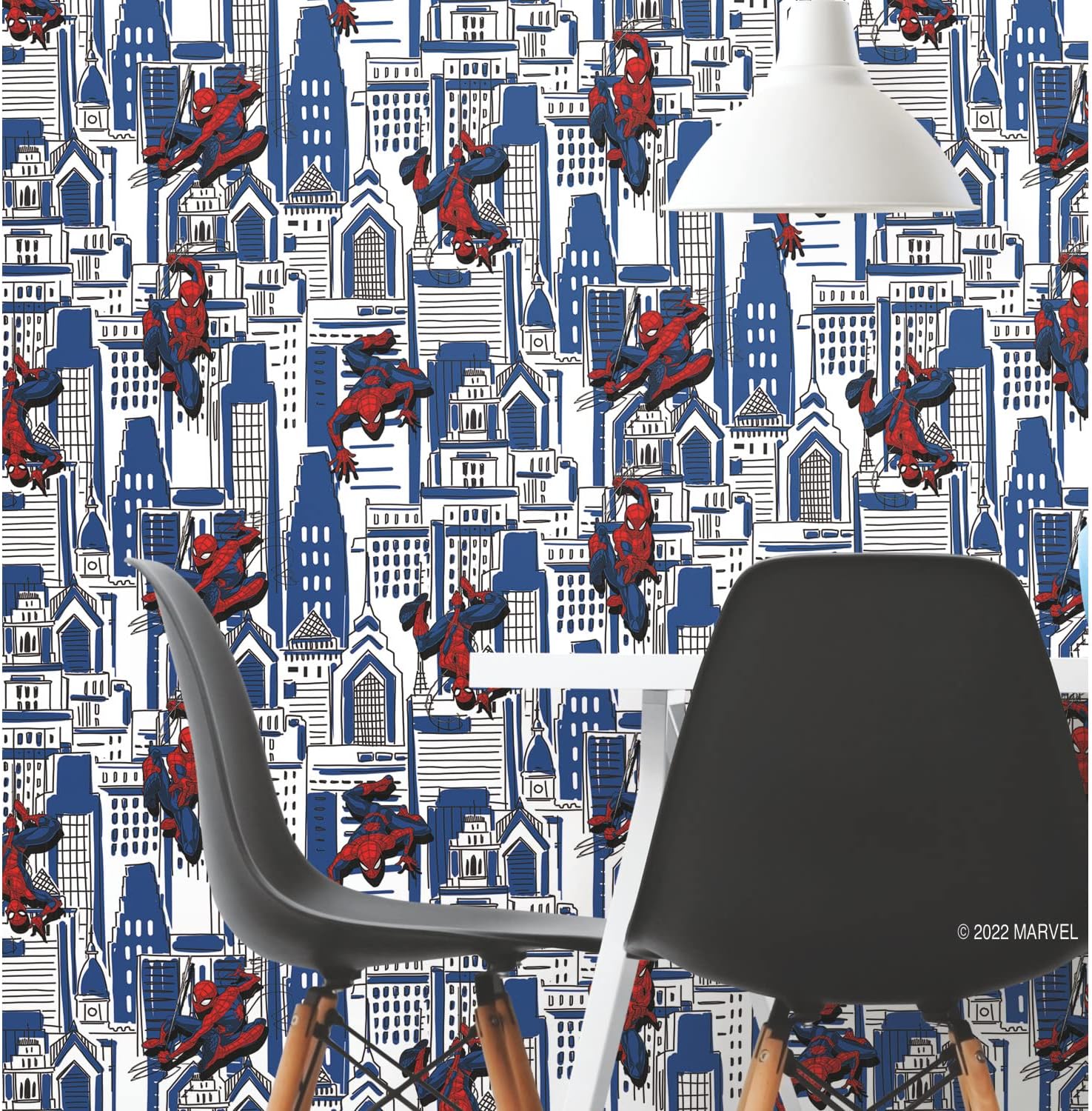 RoomMates Marvel Spider-Man Cityscape Blue Peel and Stick Wallpaper by RoomMates, RMK12459RL