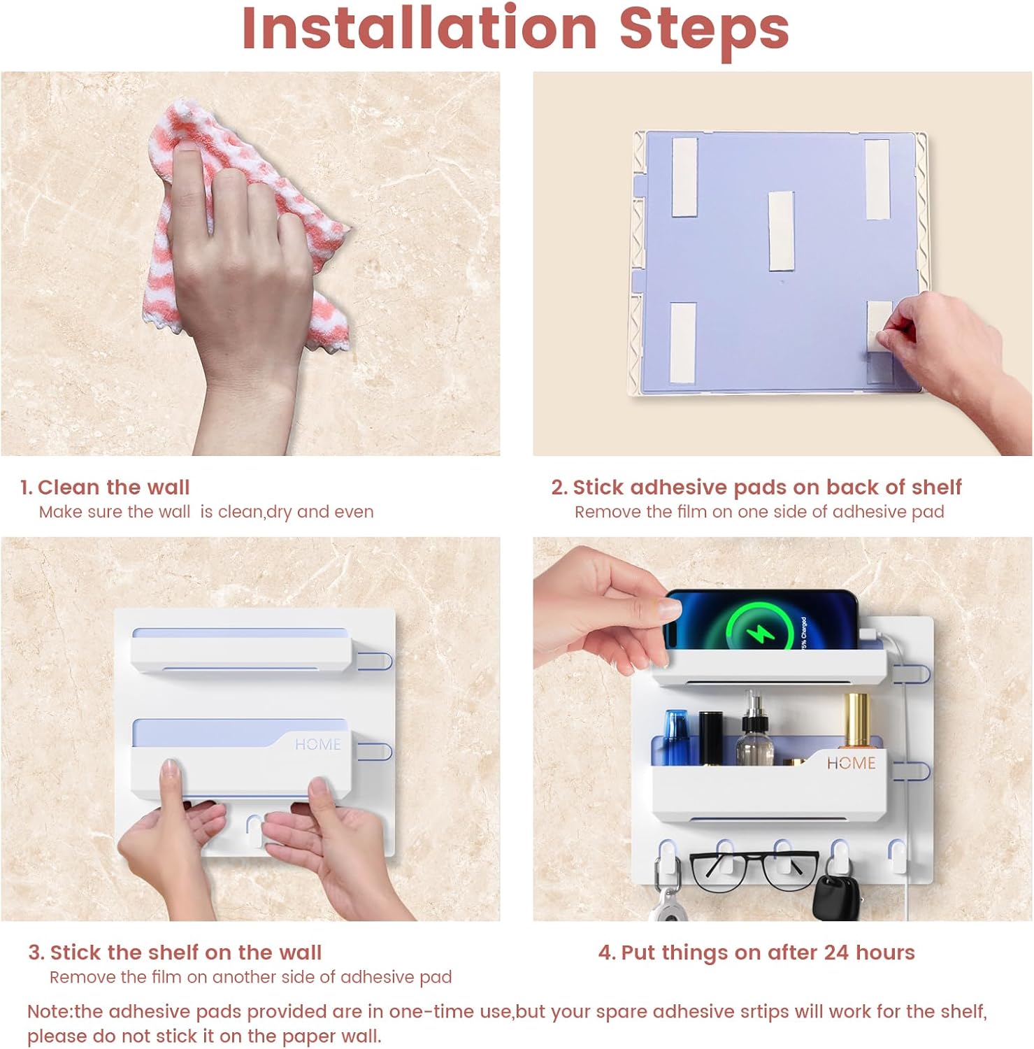 【PACKAGE INCLUDE & CUSTOMER SERVICE:】You will get 1 x wall mount shelf, 5 x Double sided tape. If you have any question about this wall organizer, please let us know at any time, we usually response in 2-3 hours. Our excellent customer service guarantee you the best shopping experience.