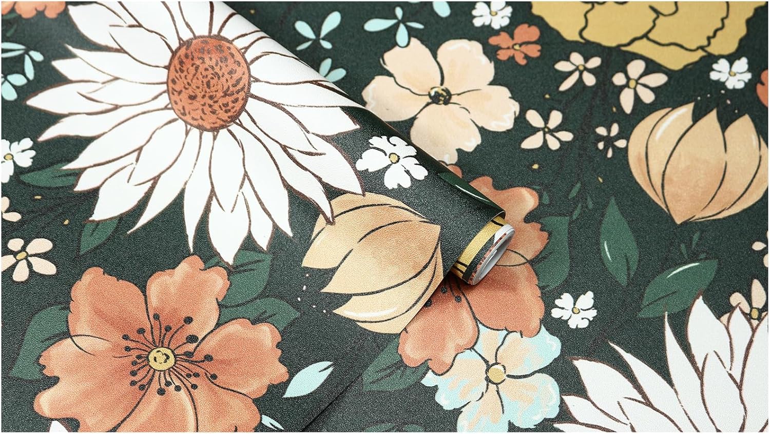 PATTERN & DESIGN: Pattern repeat is H17.7″ x W17.7″ (H45cm x W45cm), straight match. Firstly to find the correct pattern repeat and then just directly match without overlap, it’s very easy for beginner who never did peel and stick wallpaper before. Bring elegance to your space with our Vintage Floral Peel and Stick Wallpaper, blooming peony, daisy, and wildflowers in terracotta, tan, beige, and teal blue against a rich emerald green background. This removable wallpaper combines botanical with moody retro charm, perfect for accent walls, living rooms, or bedrooms. Ideal for farmhouse, boho, or country decor