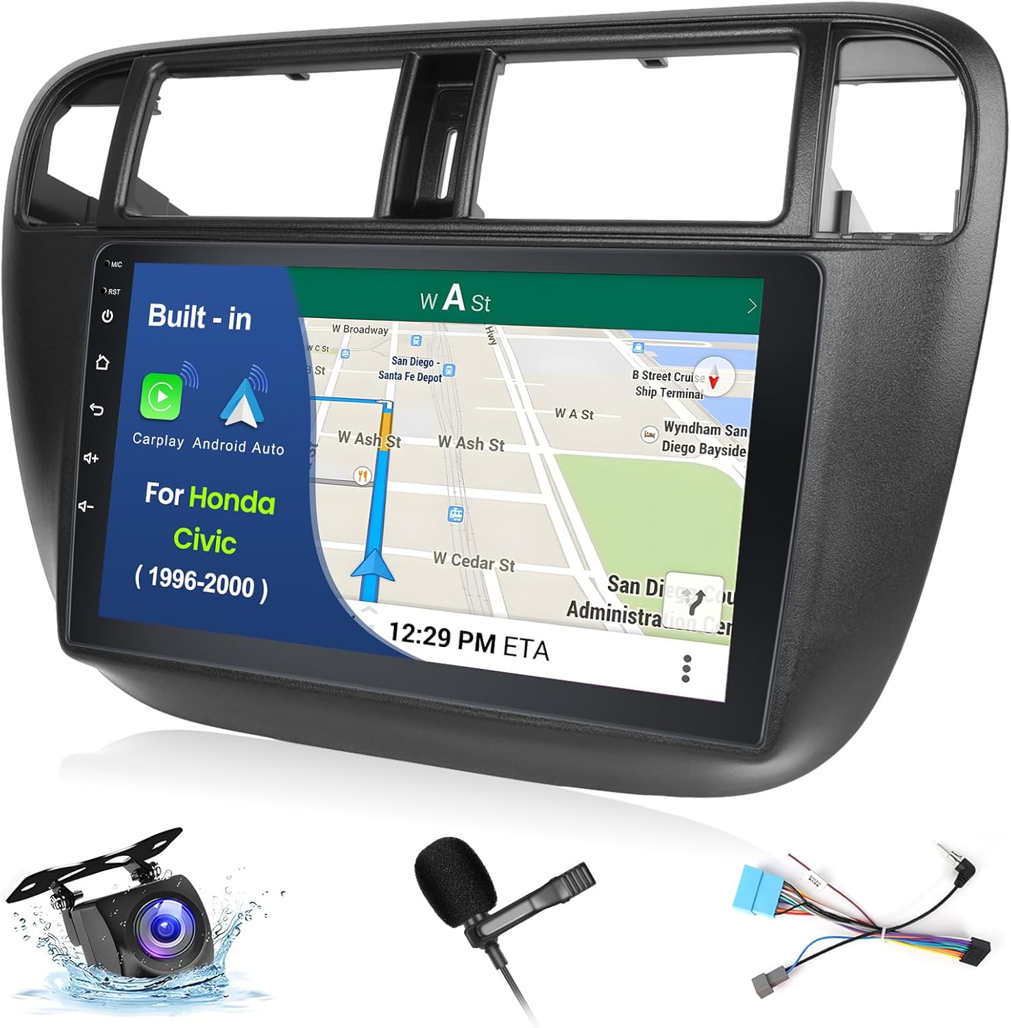 [2+64GB] Car Radio for Honda Civic (Manual A/C) 1996-2000 with Wireless Carplay Android Auto, 9 Inch HD Touchscreen Car Stereo with GPS WiFi Bluetooth FM/RDS EQ SWC 26UI Backup Camera MIC
