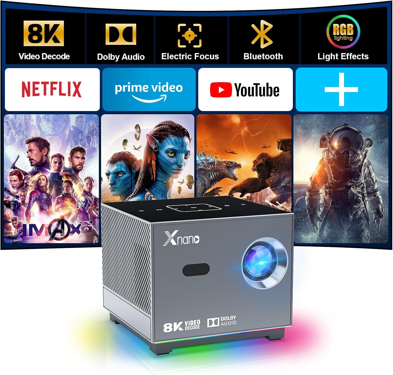 [Netflix-Licensed & AI Electric Focus]XNANO 4K Support Projector with WiFi6 and Bluetooth 5.0,Full HD 1080P Home Theater Projector,with Smart Voice Assistant,Projector 4D/4P Keystone Correction