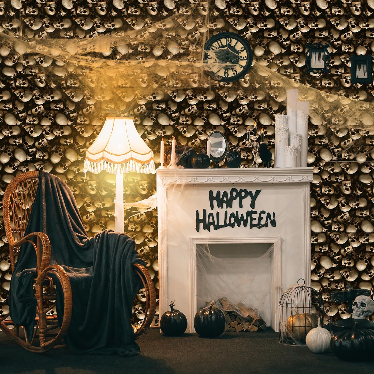 33ft Halloween Skeleton Wallpaper Party Decorations,Plastic Graveyard Skeleton Wall Backdrop,Horror Catacombs Room Scene Setters Photograph Background for Halloween Circus Haunted House Party Supplies