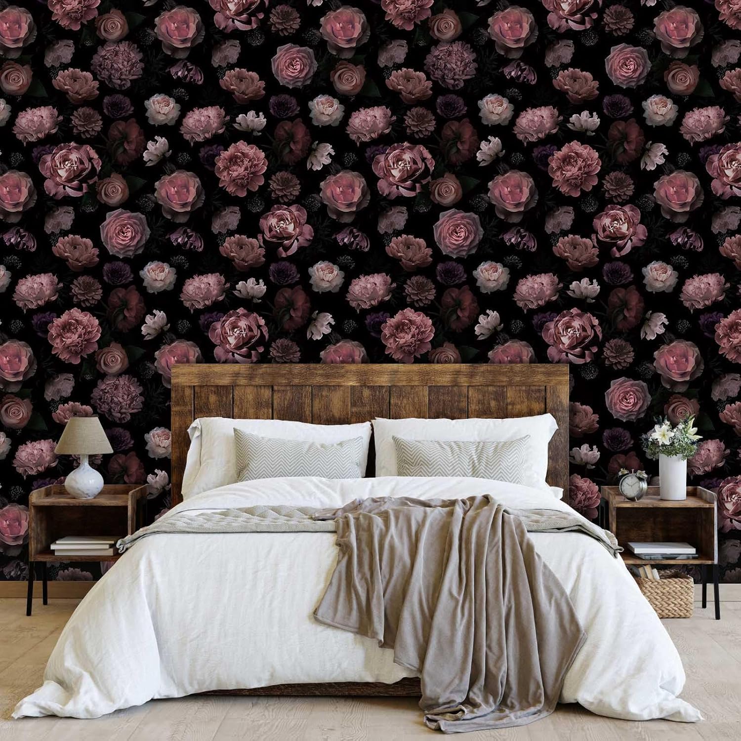 Size: Black rose flowers wallpaper 17.7 inches wide 118 inches long, covers 14.5 square feet. 17.7 inches is the fixed wallpaper width of each roll. This dark floral wallpaper, inspired by black roses and peonies, has a deep, yet vibrant tone to help you create a unique decorative style. Due to the difference in display and light, there may be color differences between the picture and the real thing. Please refer to the real thing
