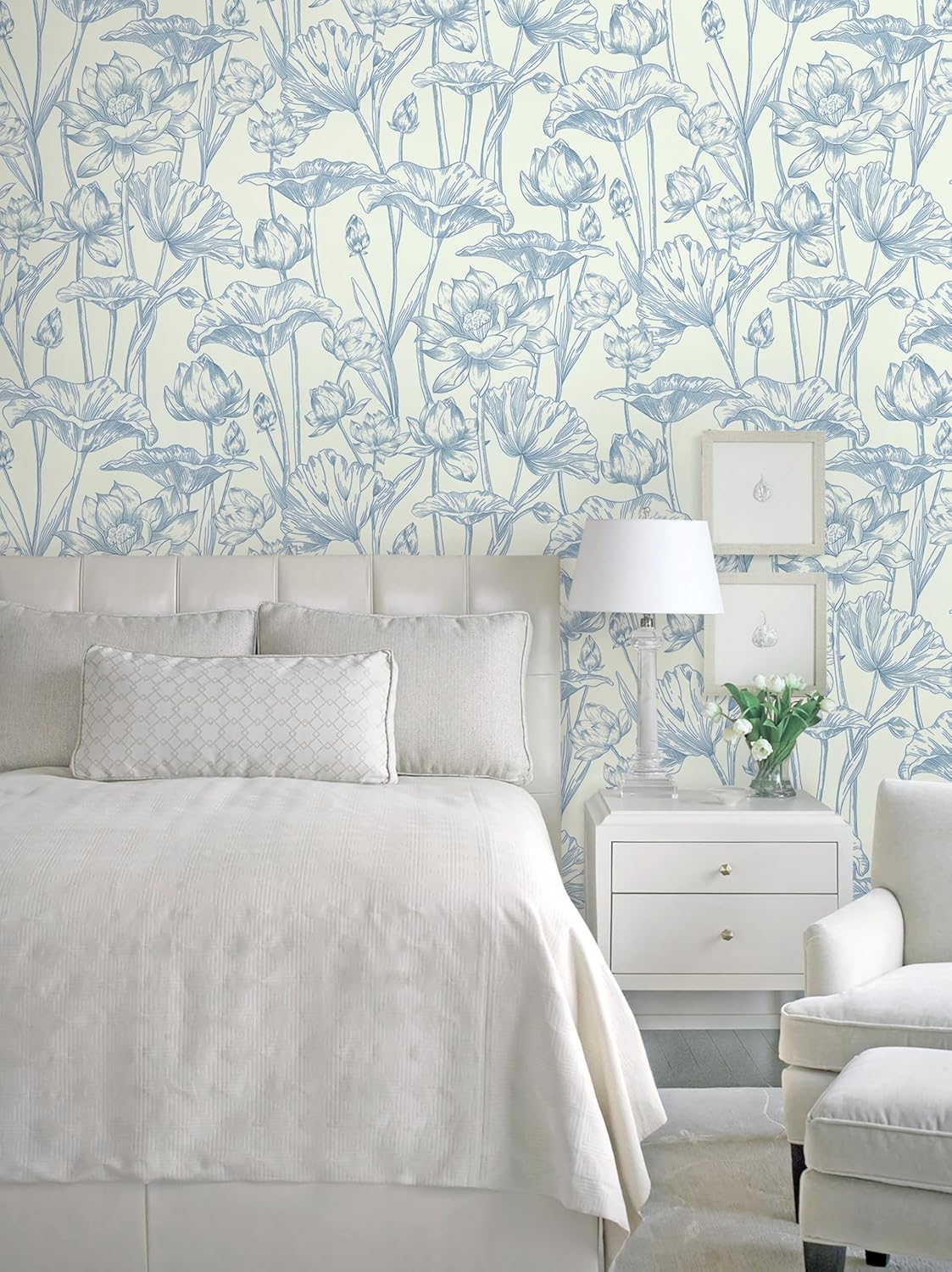 Easy to Use: This blue lotus wallpaper features peel and stick adhesive, eliminating the need for extra glue. The grid-lined backing simplifies measuring and cutting, making installation faster and easier than traditional wallpaper—so simple that one person can easily install it