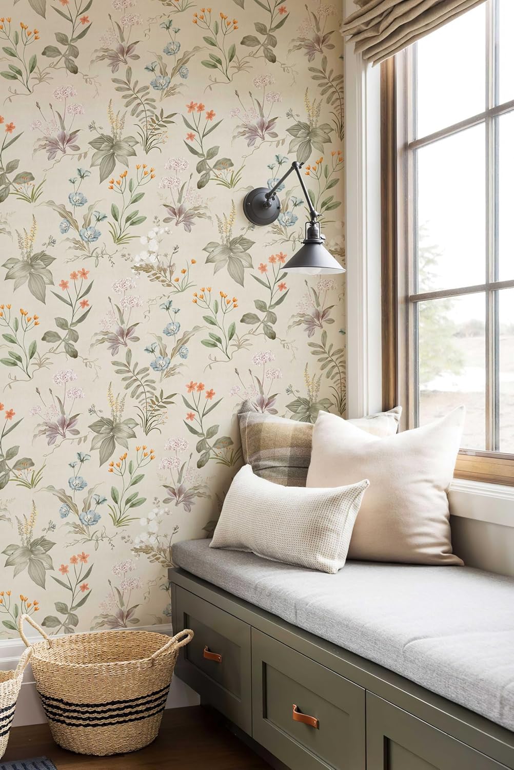 💕【Versatile Use】: This peel and stick farmhouse botanical wallpaper can be used as cabinet contact paper, desk contact paper, kitchen contact paper, wall contact paper and bookshelf liner, etc., perfect for bedrooms, living rooms, bathrooms, kitchens, or any other living spaces, it’s versatile and blends well with a wide range of decorative styles
