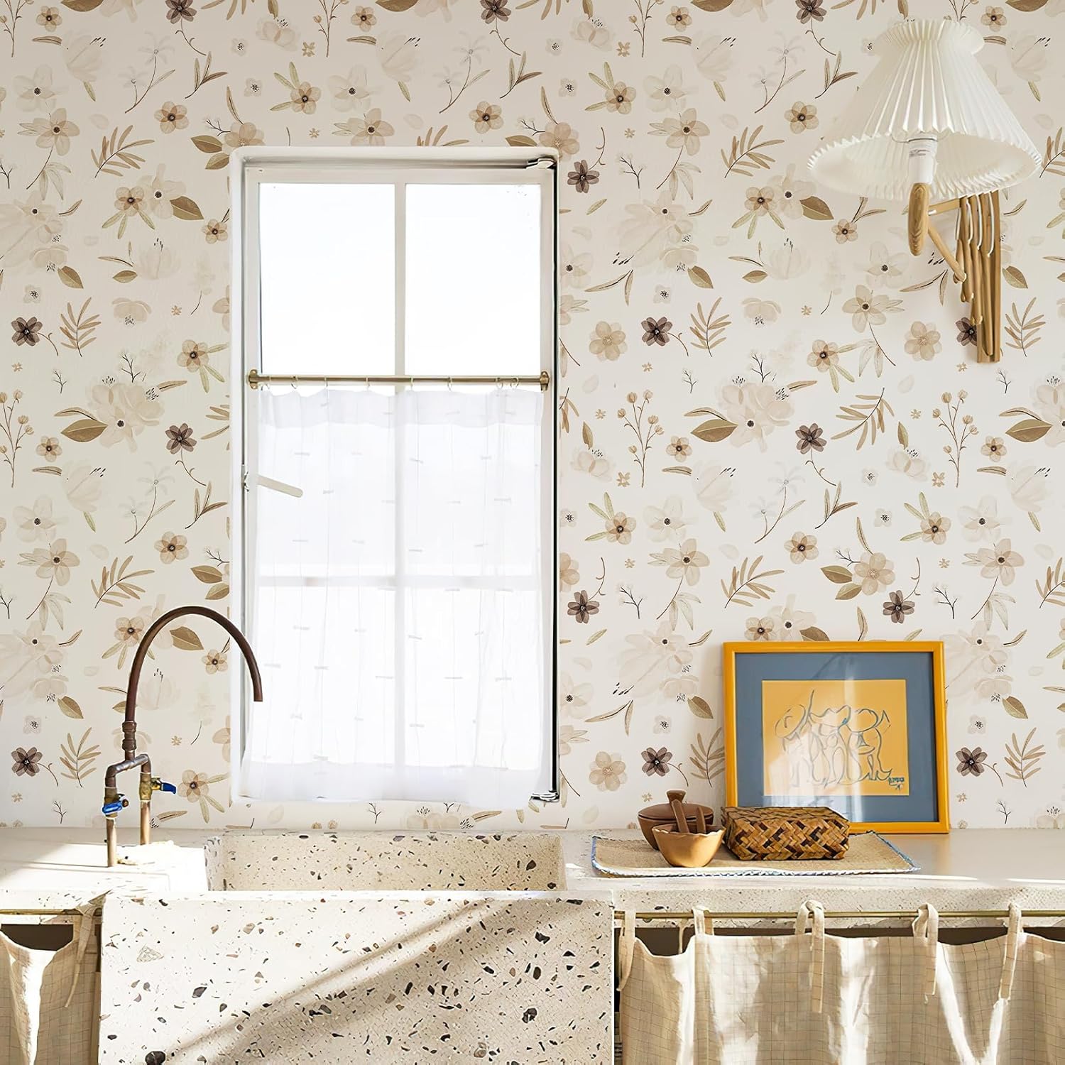 Neutral Design: HueBurst’s autumn warm white peel and stick wallpaper boasts a charming, rustic tan&green flower design that adds warmth and depth to any space. The subtle yet striking pattern features neutral, earthy tones that beautifully complement a wide range of furniture and decor styles