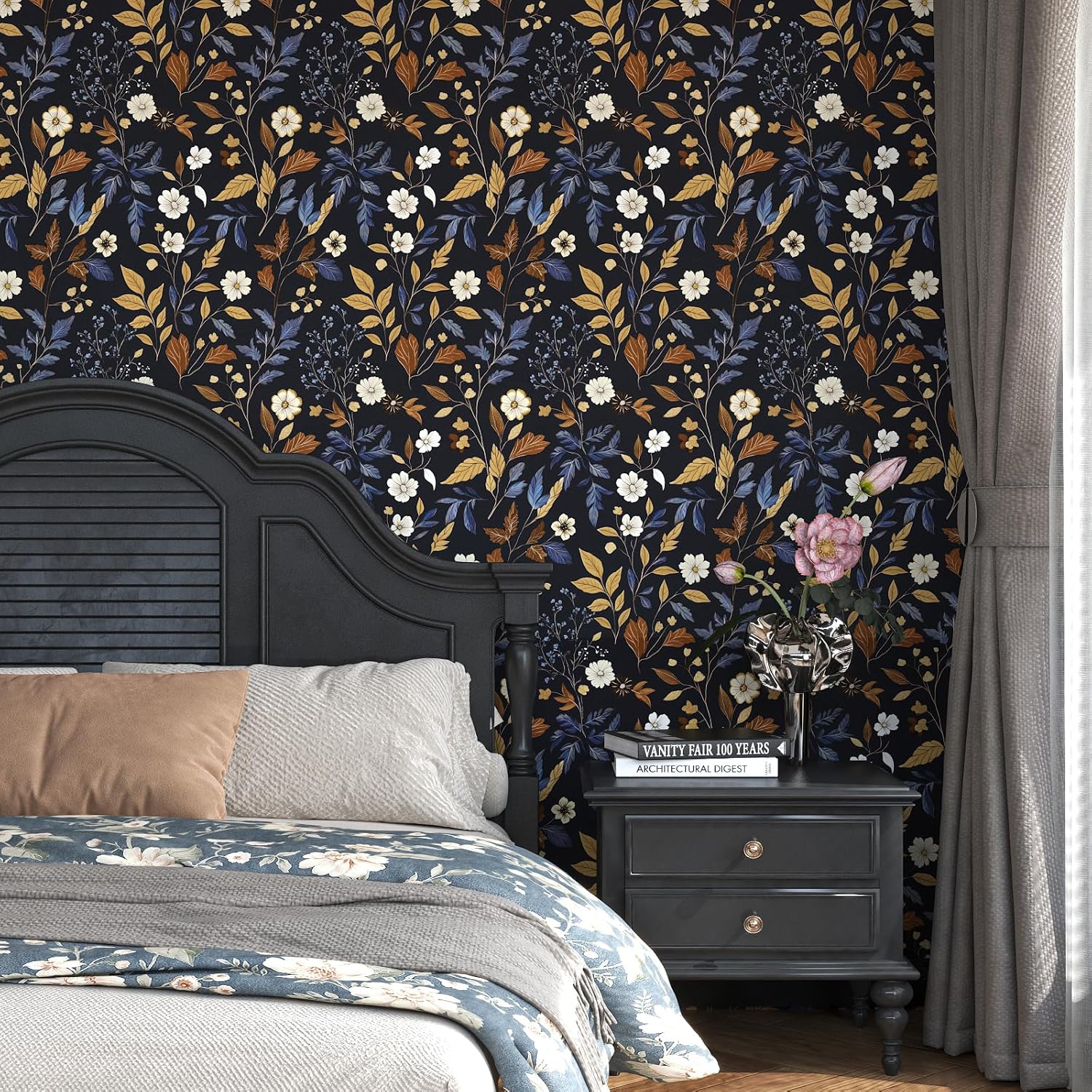 [PRODUCT SIZE] Floral peel and stick wallpaper 17.5 x 118 inches, covering an area of 14.36 square feet.Due to the possibility of slight color differences between contact papers from different batches,it is recommended to purchase enough wallpaper at once time.