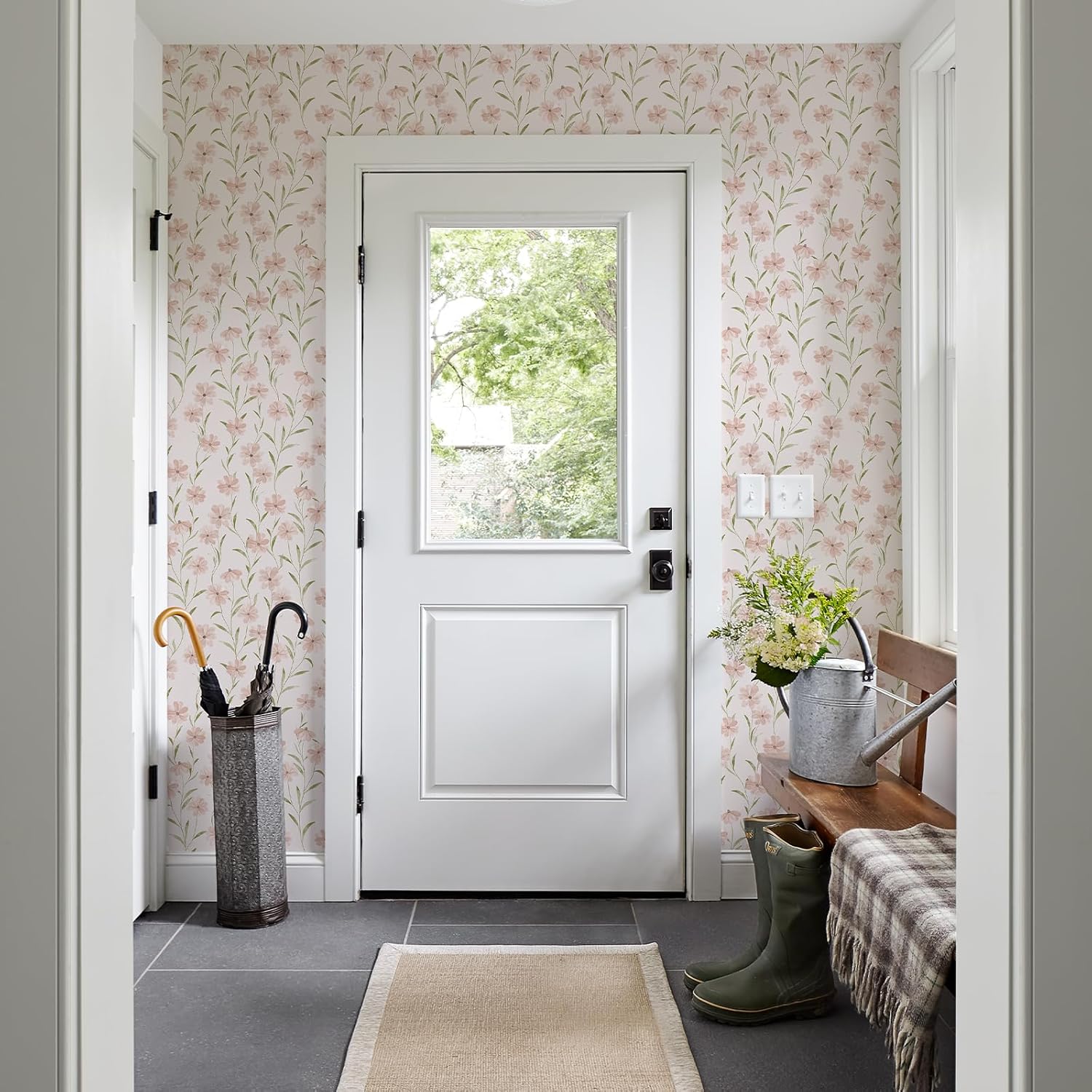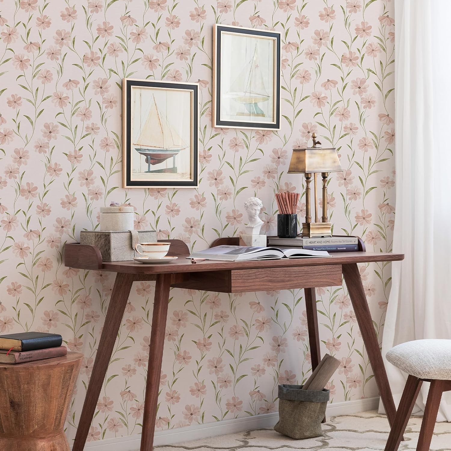 Use for: The pink flower wallpaper is suitable for girls room, living room, bedroom, bathroom, kitchen, cabinet, backsplash, stair riser, shelf lining, bookcase, wardrobes, or any other flat, smooth and dry surfaces. Or any other space where you want to add a touch of natural beauty
