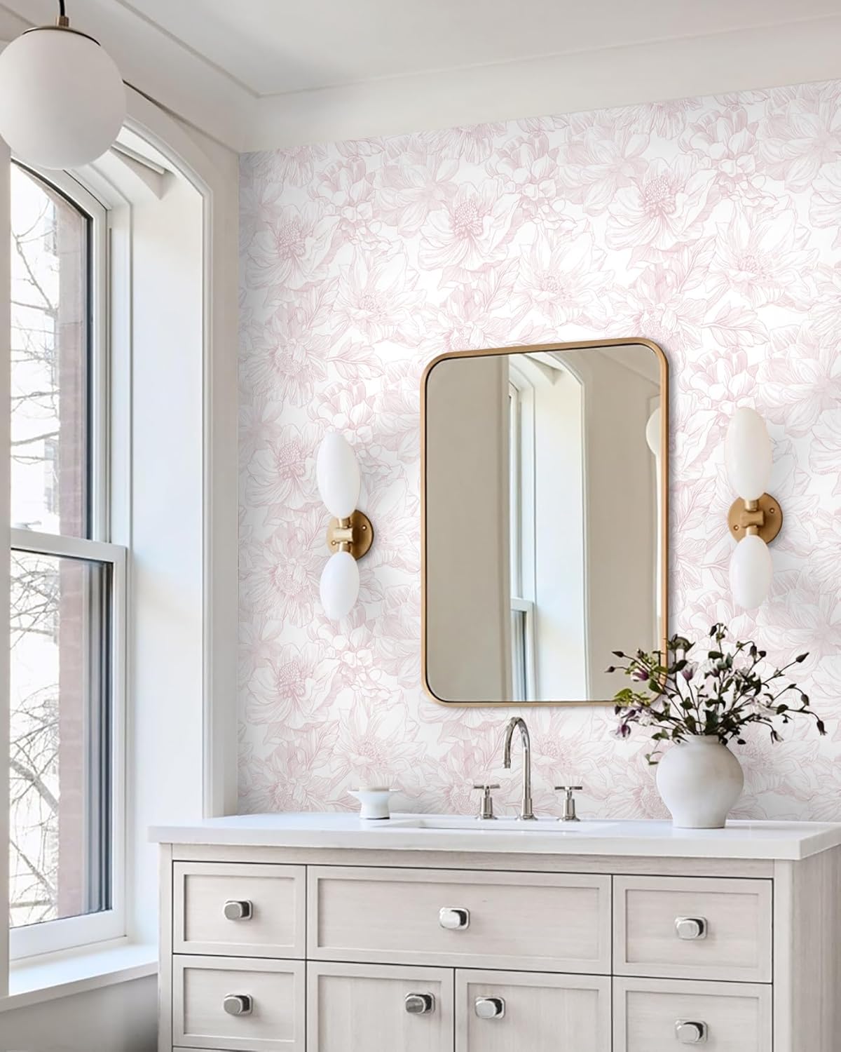 【NEW DESIGN CONCEPT】-Dimoon’s new white-on-pink line floral wallpaper blends modern and bohemian styles by stitching together a variety of gorgeous, large florals, retaining the splendour of the flowers while enhancing the design and decorative function of the pattern with delicate lines and versatile styles.