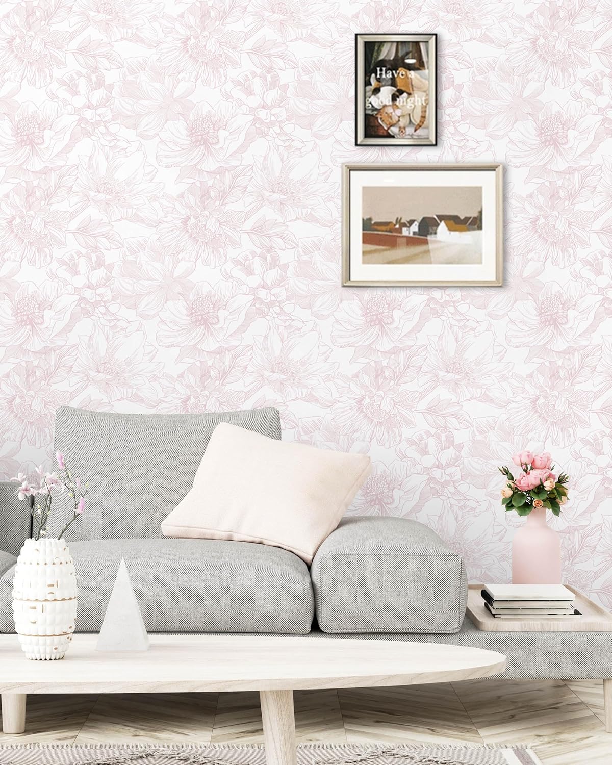 Dimoon 78.7″x17.3″ Peel and Stick Wallpaper Floral Contact Paper Boho White Pink Flower Wallpaper Removable Wall Paper Self Adhesive Modern Contactpaper for Cabinets Drawers Bedroom Thicken Vinyl