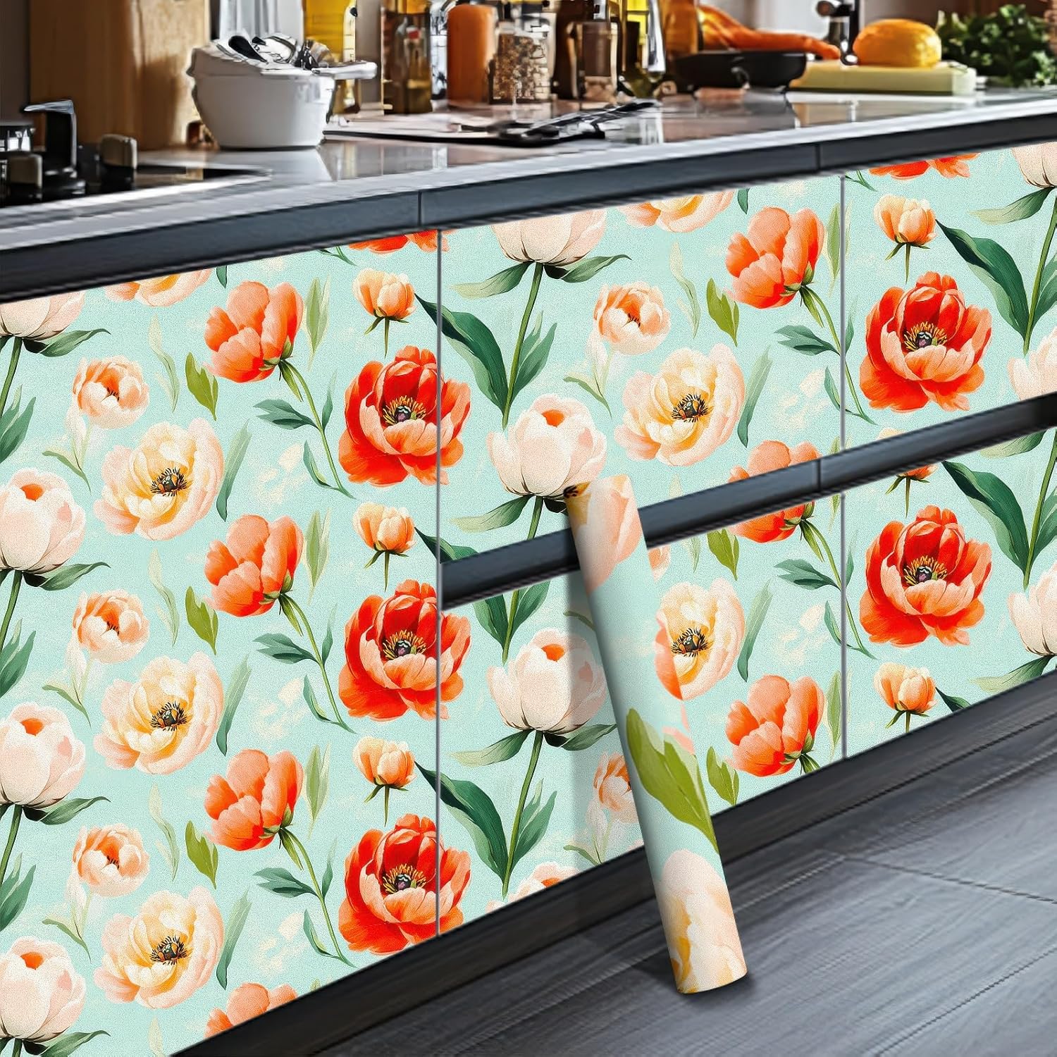 Self Adhesive Vinyl Material: Made from self adhesive vinyl this floral contact paper is easy to install on clean smooth surfaces without glue or tools making it ideal for quick makeovers and rental-friendly updates.