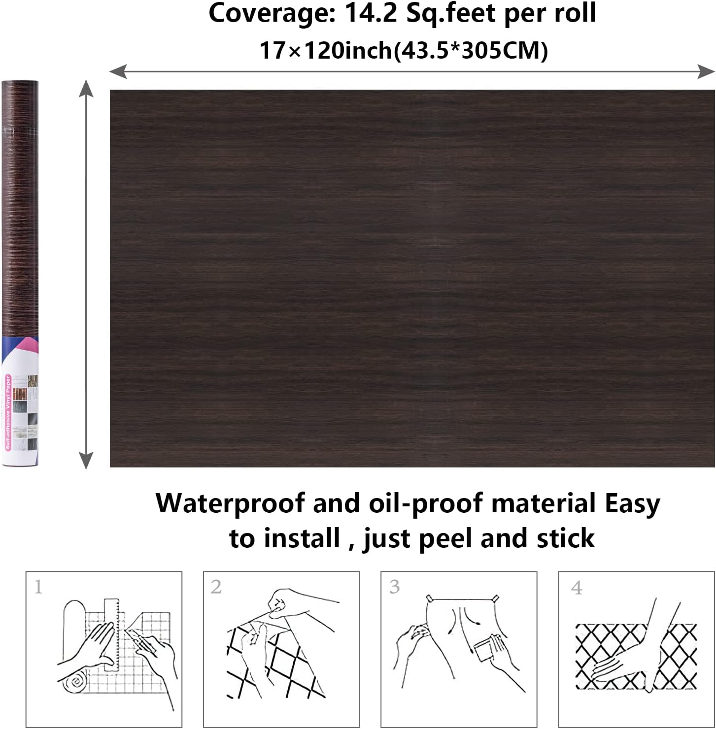 【ROLL SIZE】The roll size of this Brown Wood Contact Paper is 17” x 120″ (43.5 x 305CM); Covers 14.2 square feet, if you need more sizes for your area, to avoid color differnece please order enough rolls at a time