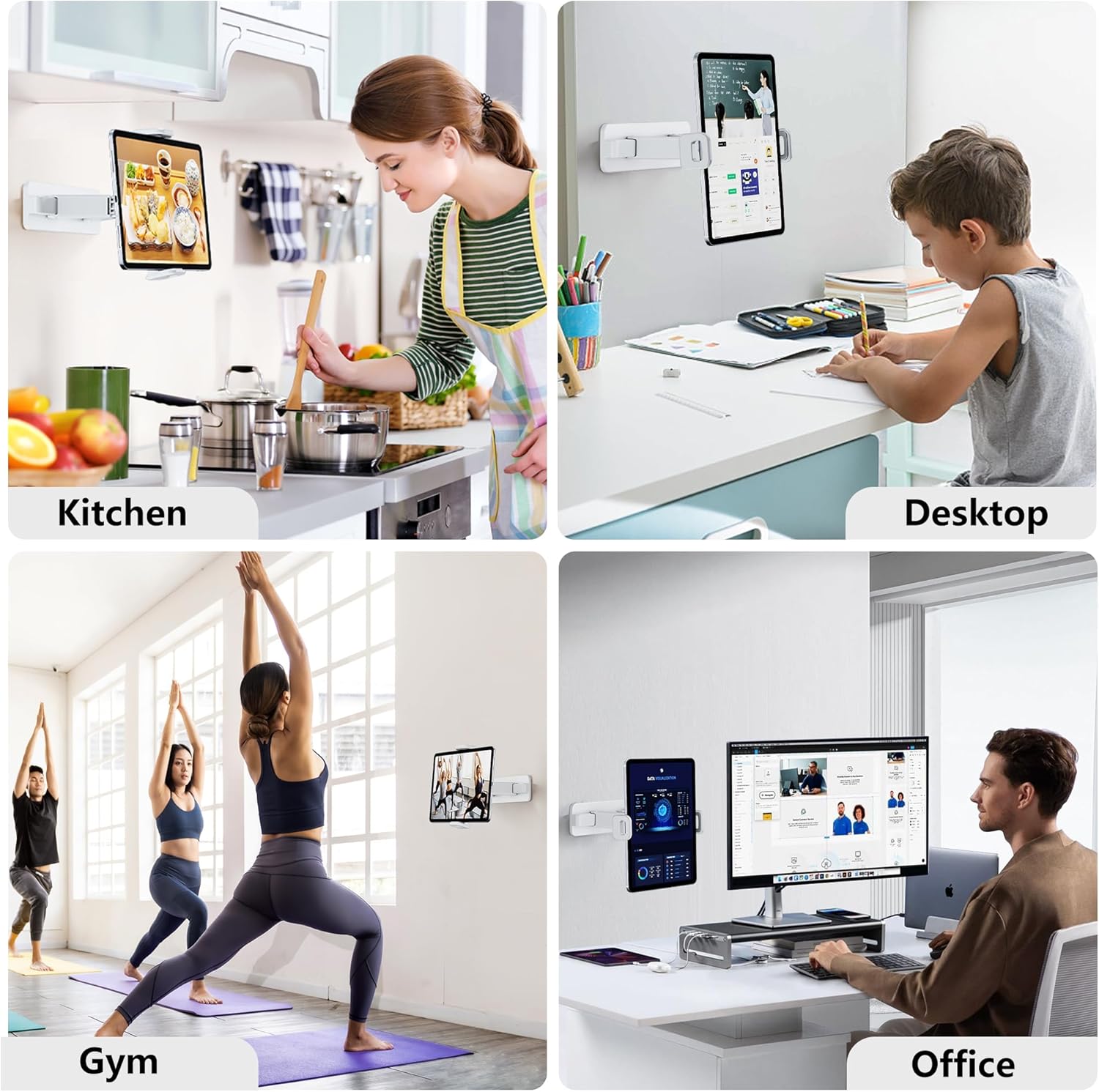 【Multiple Occasions】Widely used for various occasions such as cooking, kitchen sink, bathtub, desktop, mirror, bedroom, bedside cupboard, gym, conference room or classroom. In the box: tablet wall mount holder with 2 sticky pads. May your tablet moments glow joyfully with Lazmount.