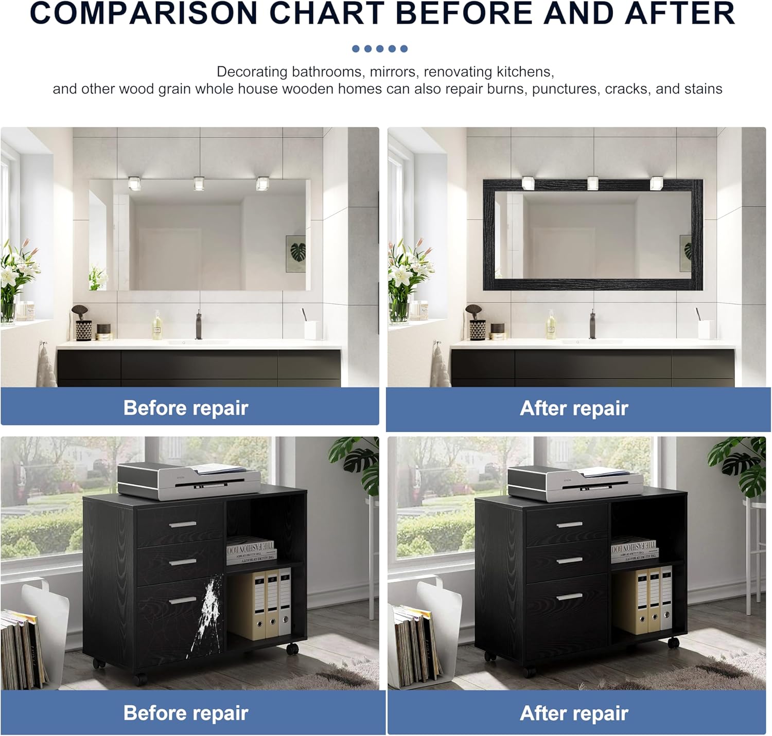 Self-Adhesive Convenience: This wood grain tape uses a high-quality adhesive to ensure strong adhesion. With a thickness of only 0.1mm, it can easily adhere to various flat surfaces without worrying about edge curling. Whether used to enhance the aesthetic of your home or to cover scratches and wear, it can perfectly fulfill its role.
