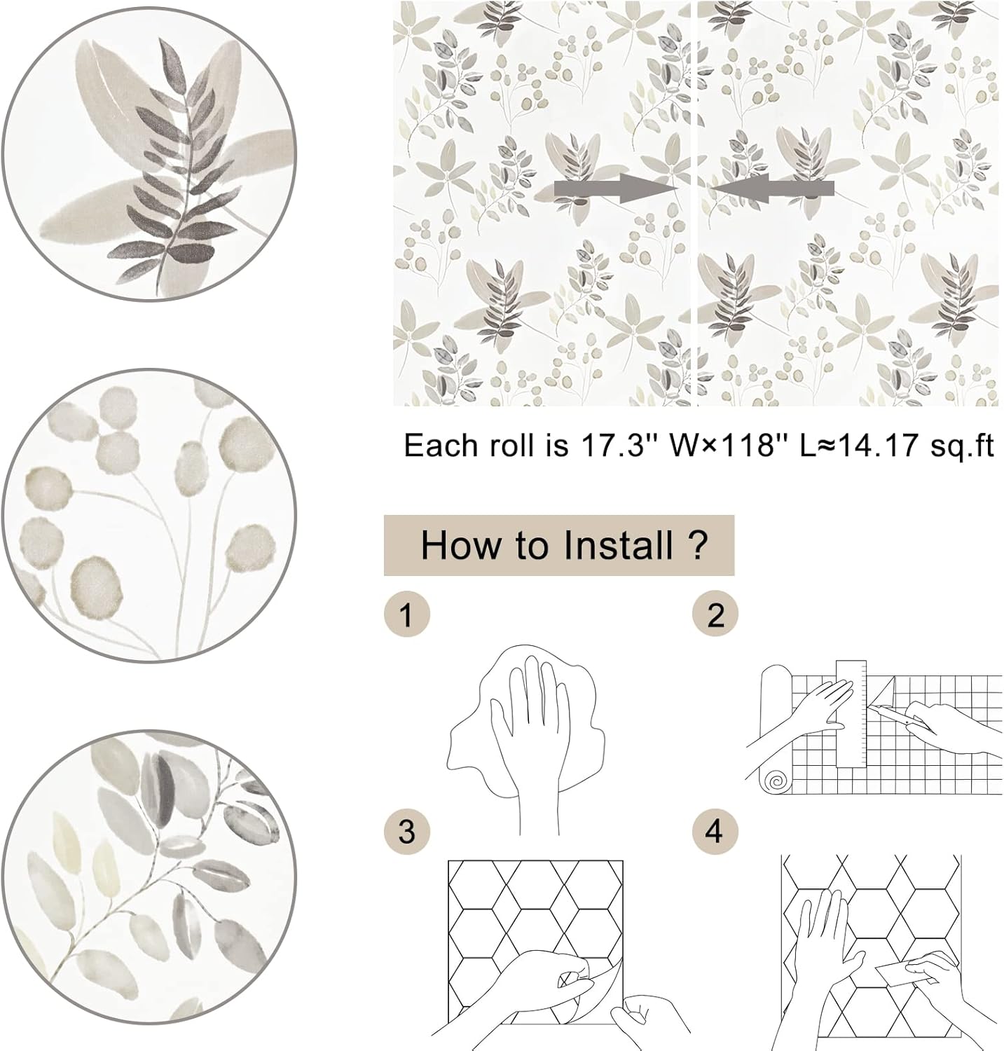 FEATURES: The leaf peel and stick wallpaper is self adhesive, waterproof, easy to clean, repositionable, and fully removable without leaving sticky residue, friendly to both renters and home owners. Floral peel and stick wallpaper is easy to cut with grid lines on the back.