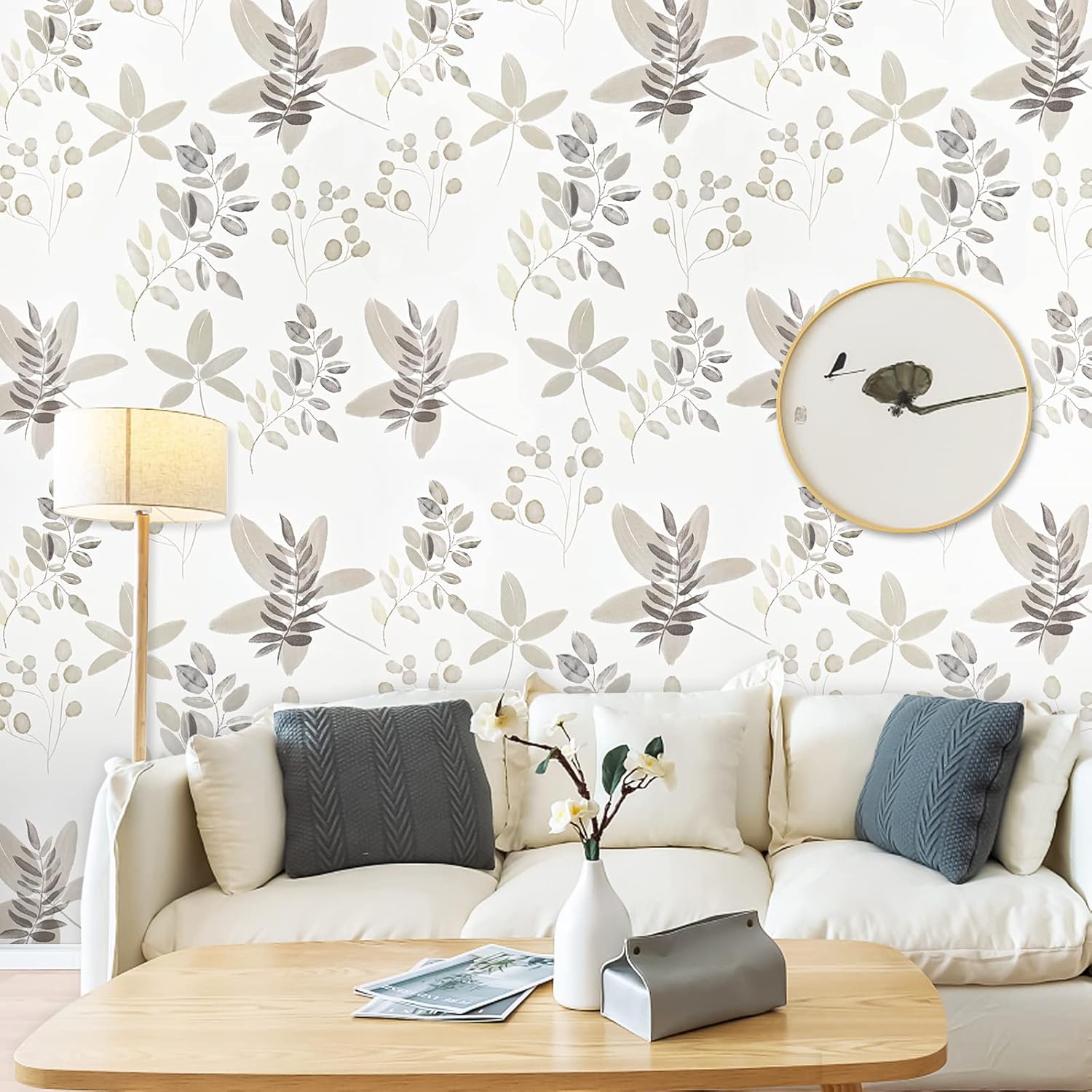 UNIQUE DESIGN: Floral wallpaper breaks the convention and uses khaki as the background, aiming to design an autumn leaf pattern in neutral tones. The combination of maple leaves, eucalyptus leaves and olive leaves will make a difference to your room. Size: 17.3In×118In(1 roll)=14.17 sq. ft.