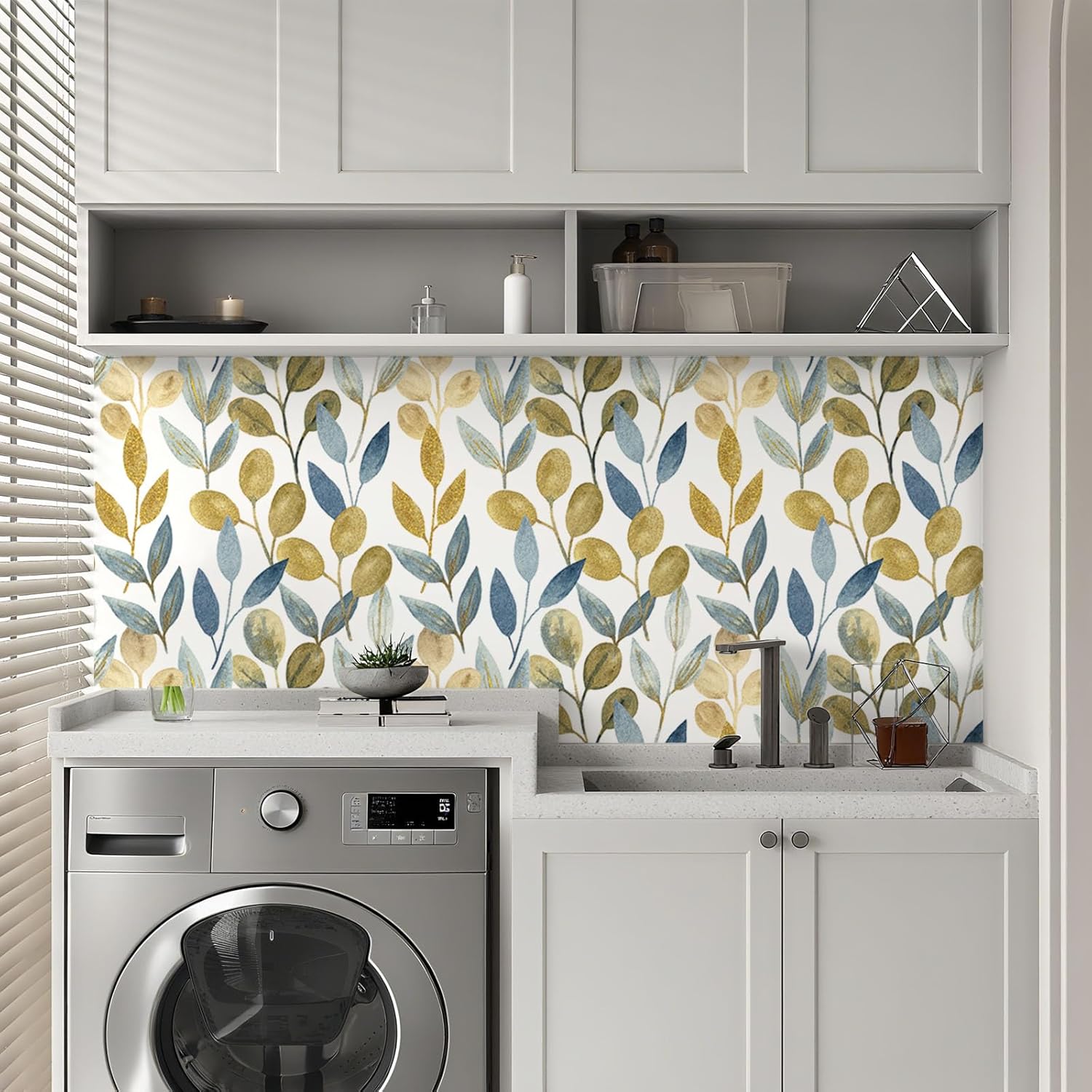 Roll Size & Coverage – Each roll of this blue and gold leaf peel and stick wallpaper measures 17.7″ x 70.8″, covering about 8.7 sq.ft. Featuring a watercolor botanical pattern with a modern luxury touch, ideal for accent walls, bedrooms, and decorative areas