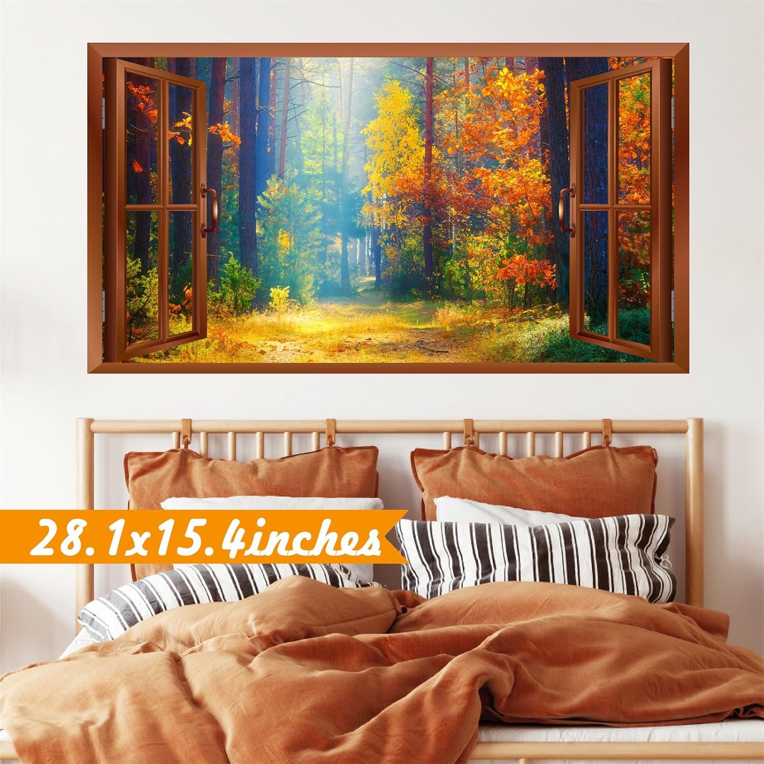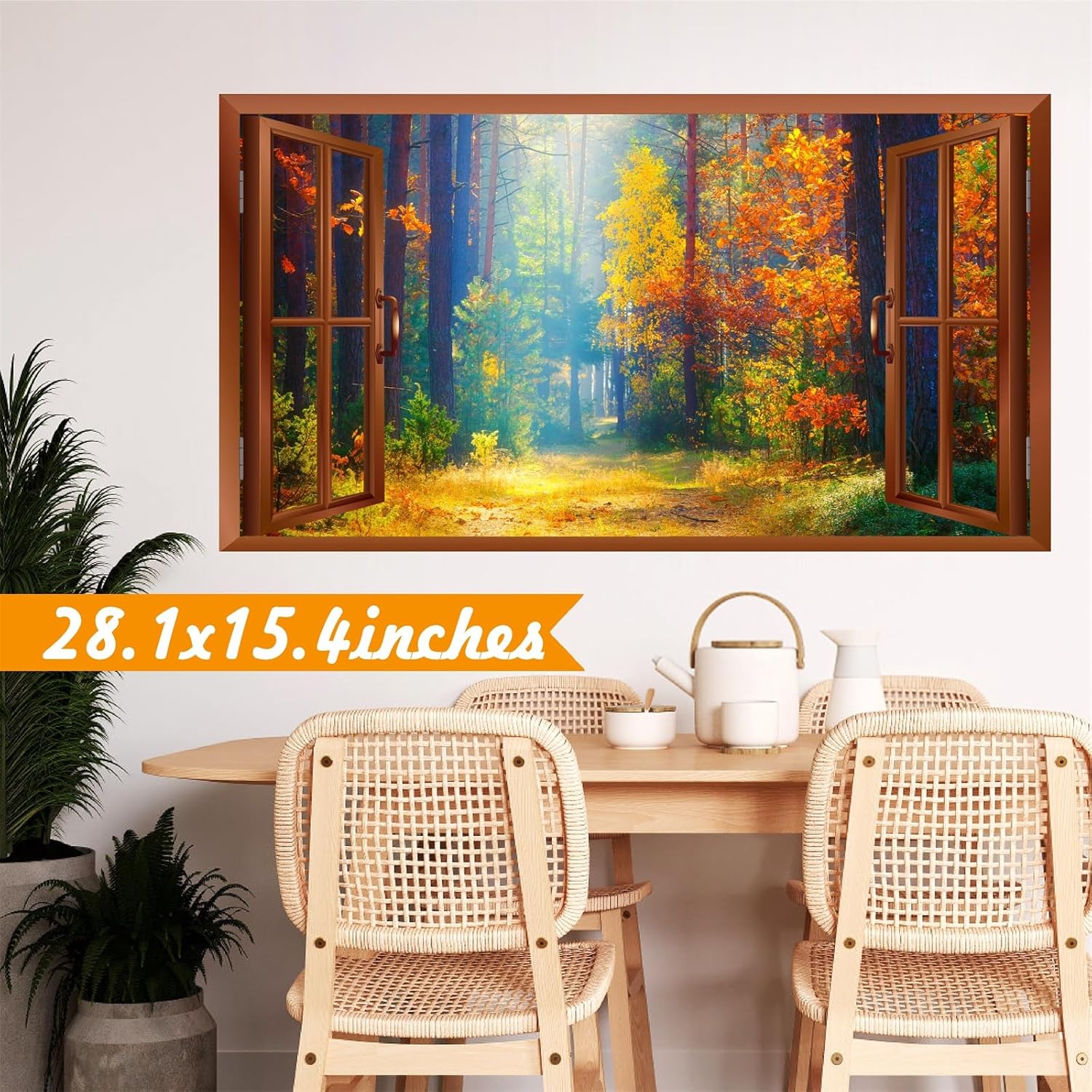 Decorative Effect: The 3D forest wall stickers are designed with fake window, dreamy Forest scene,sunshine and grass,it will make your room become a charming and energy space, as if you are walking in the realistic forestry garden.