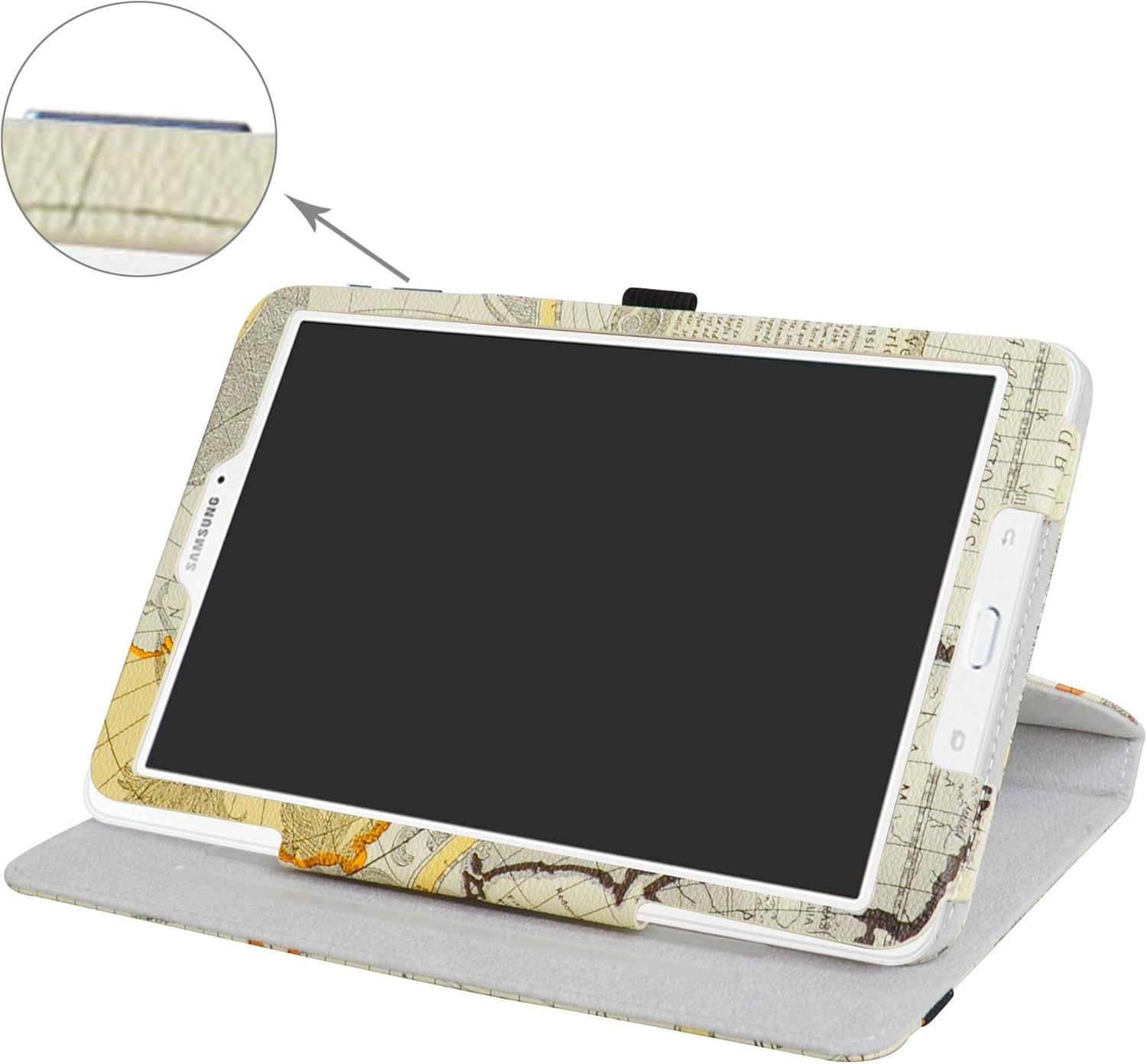 Galaxy Tab E 9.6 Rotating Case,Mama Mouth 360 Degree Rotary Stand with Cute Cover for Samsung Galaxy Tab E 9.6 / E Nook 9.6 Inch T560 T561 T567 Verizon 4G LTE,Map White