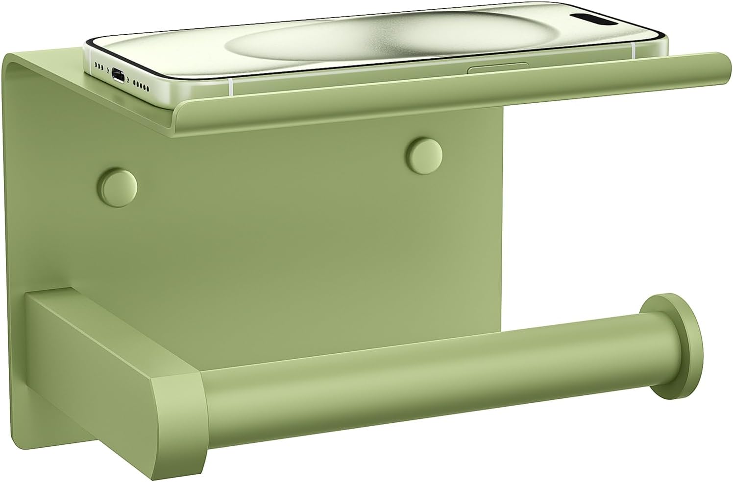 MODERN & STYLISH DESIGN: Soft Sage Green painted, waterproof, rust-proof and corrosion resistant, bathroom toilet paper holder fits a variety of home decor style, add modern home atmosphere and save your efforts from organizing bathroom and kitchen. Standard process builds delicate finish that is beautiful and long lasting.
