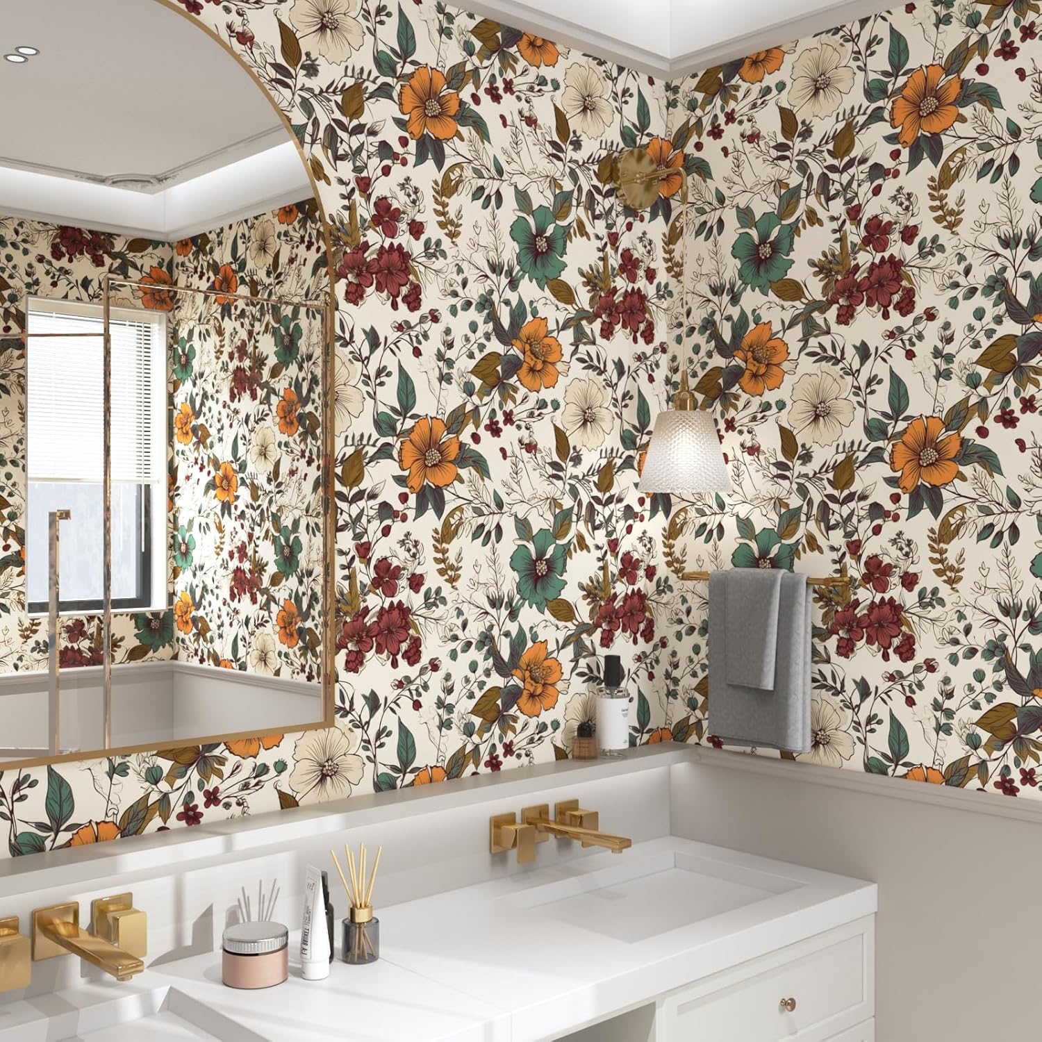 Multi Purpose: This dark floral peel and stick wallpaper for cabinets can be as contact paper for cabinets, contact paper for desk, kitchen contact paper, contact paper for walls, shelf liner and bathroom colorful spoonflower wallpaper and stick everywhere you like. Removable wallpaper peel and stick is an affordable option for decorative furniture. Simple DIY wallpaper for bedroom paste decoration to make your home more comfortable.