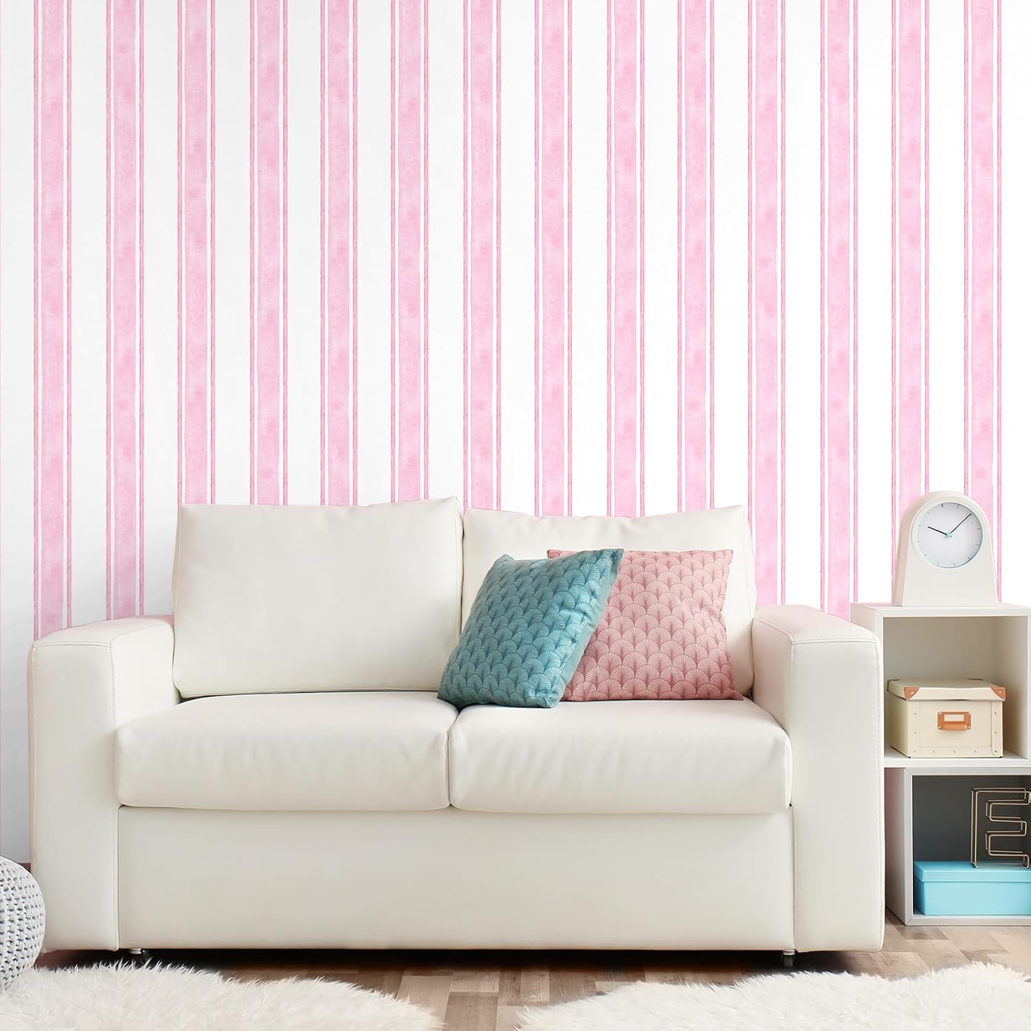Pink and White Stripe Wallpaper: comes with 1 roll of watercolor pink striped wallpaper, measuring about 15.75 x 118.11 inch/ 40 x 300 cm, making the set up or decoration process simple and convenient; This single purchase avails everything you need to transform your space