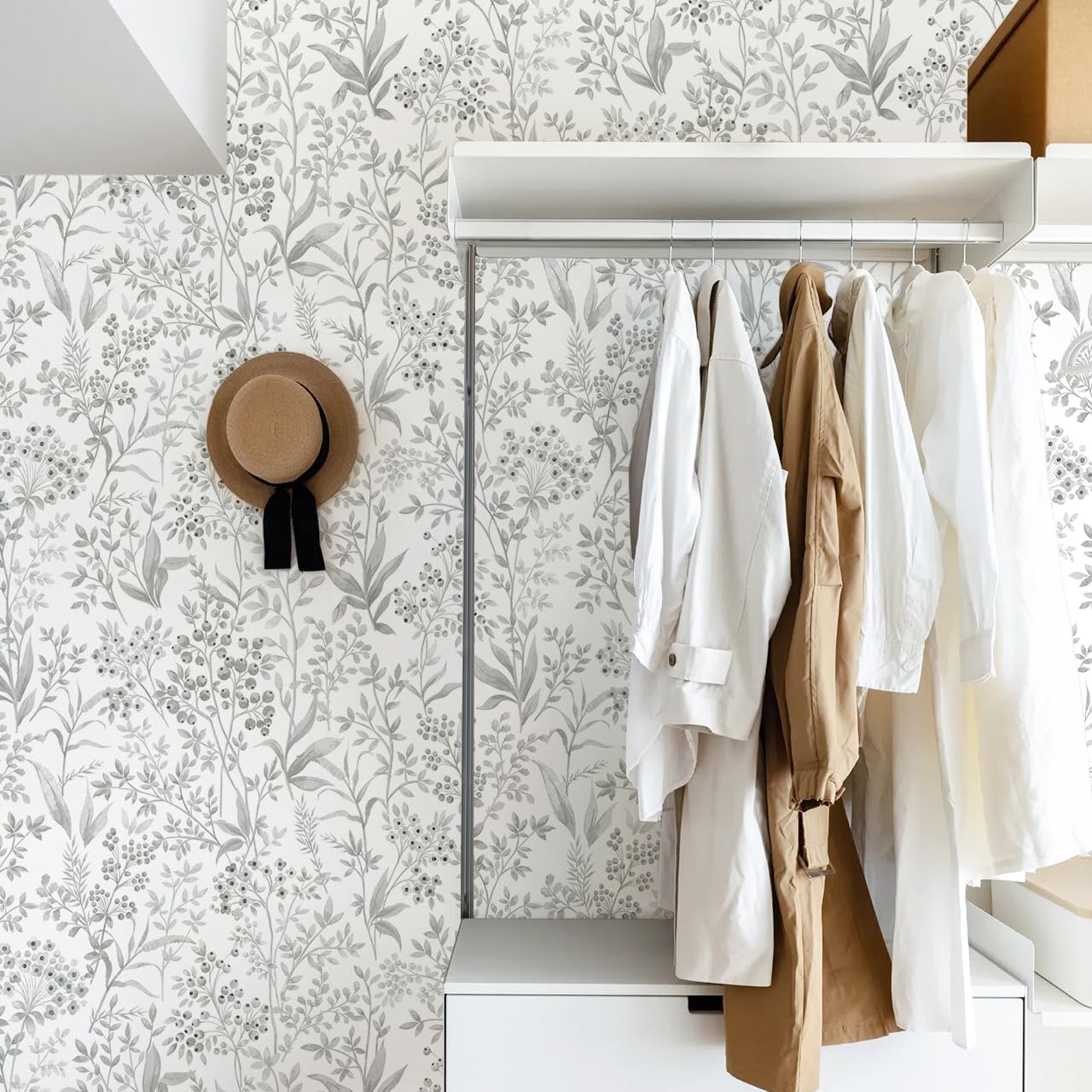 About Design:Our designers use classic grey and white tones with a leaf floral pattern that is even and beautiful, with meandering leaves and flowers much staggered to give you an elegant and harmonious visual experience. It is the best choice to infuse your space with classical sophistication and serene beauty