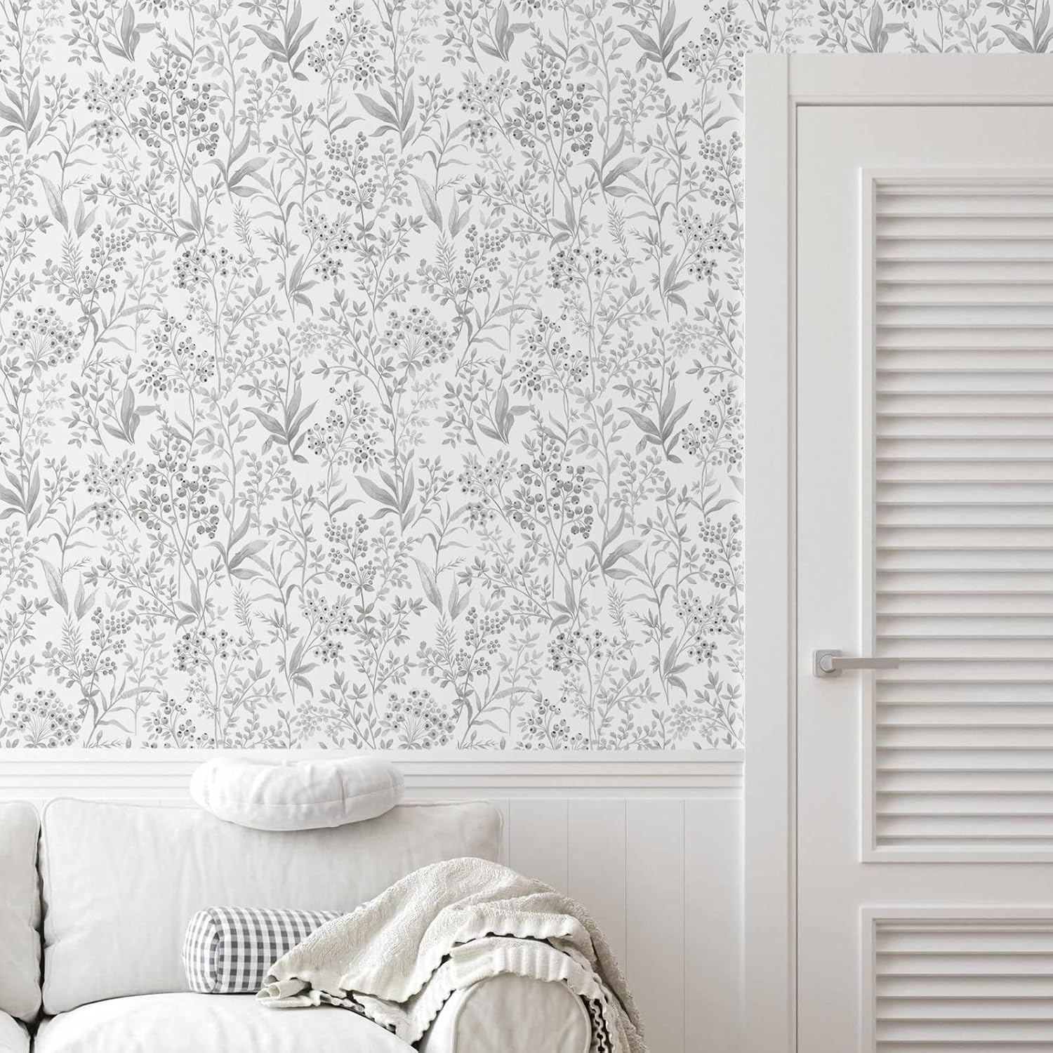 Cohoo Home Gray White Peel and Stick Wallpaper Gray Floral Contact Paper for Cabinets Drawers 17.3inW 118inL Self-Adhesive Removable Wallpaper Shelf Liner Bedroom Bathroom Waterproof Neutral Farmhouse