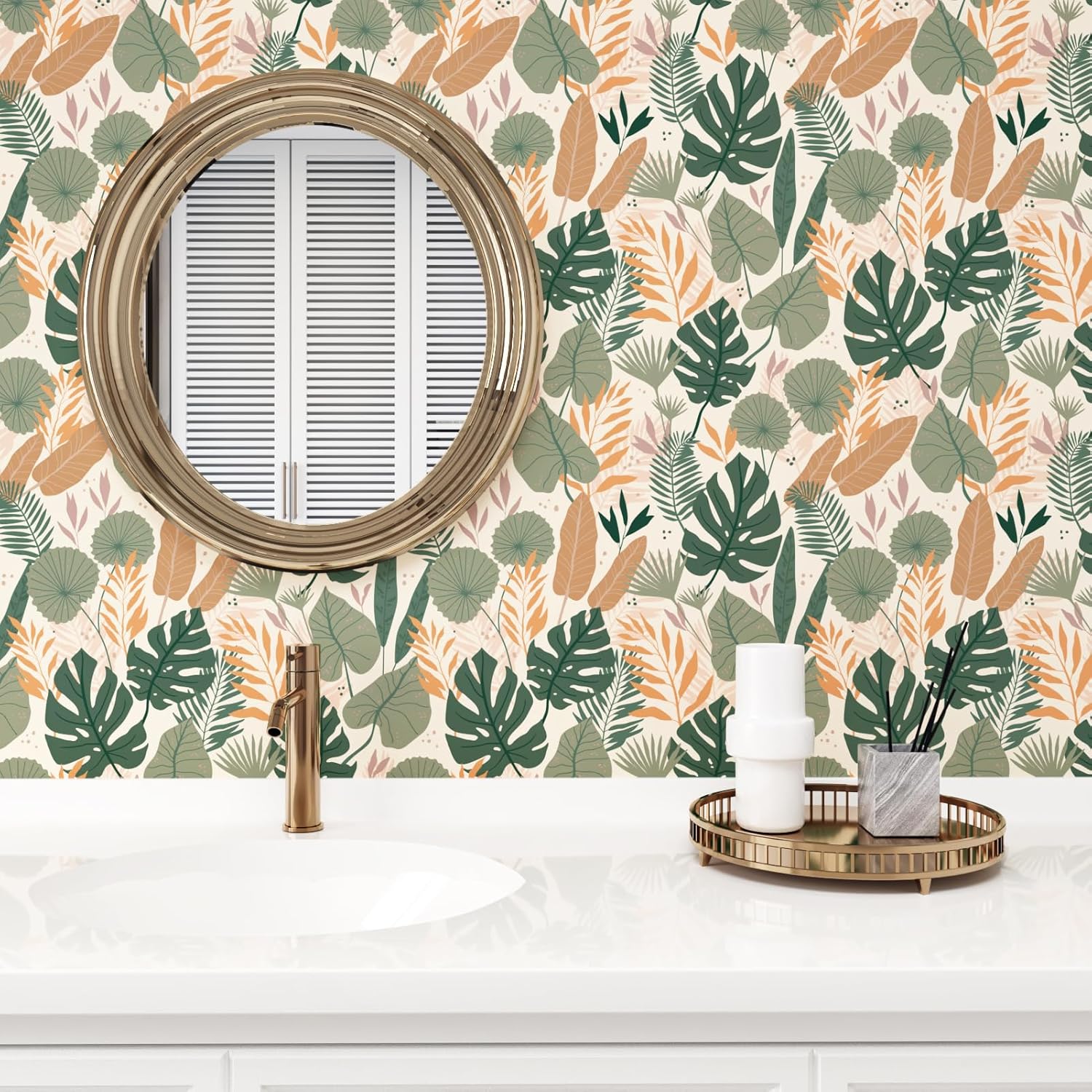 【Leaf Wallpaper】Features: Botanical wallpaper sticker pull and stick is made of vinyl, 17.5in x 102in(44.5CM*2.6M), boho peel and stick wallpaper is thicker, not easy to tear, waterproof, oil-proof and scratchproof, apartment friendly wallpaper.