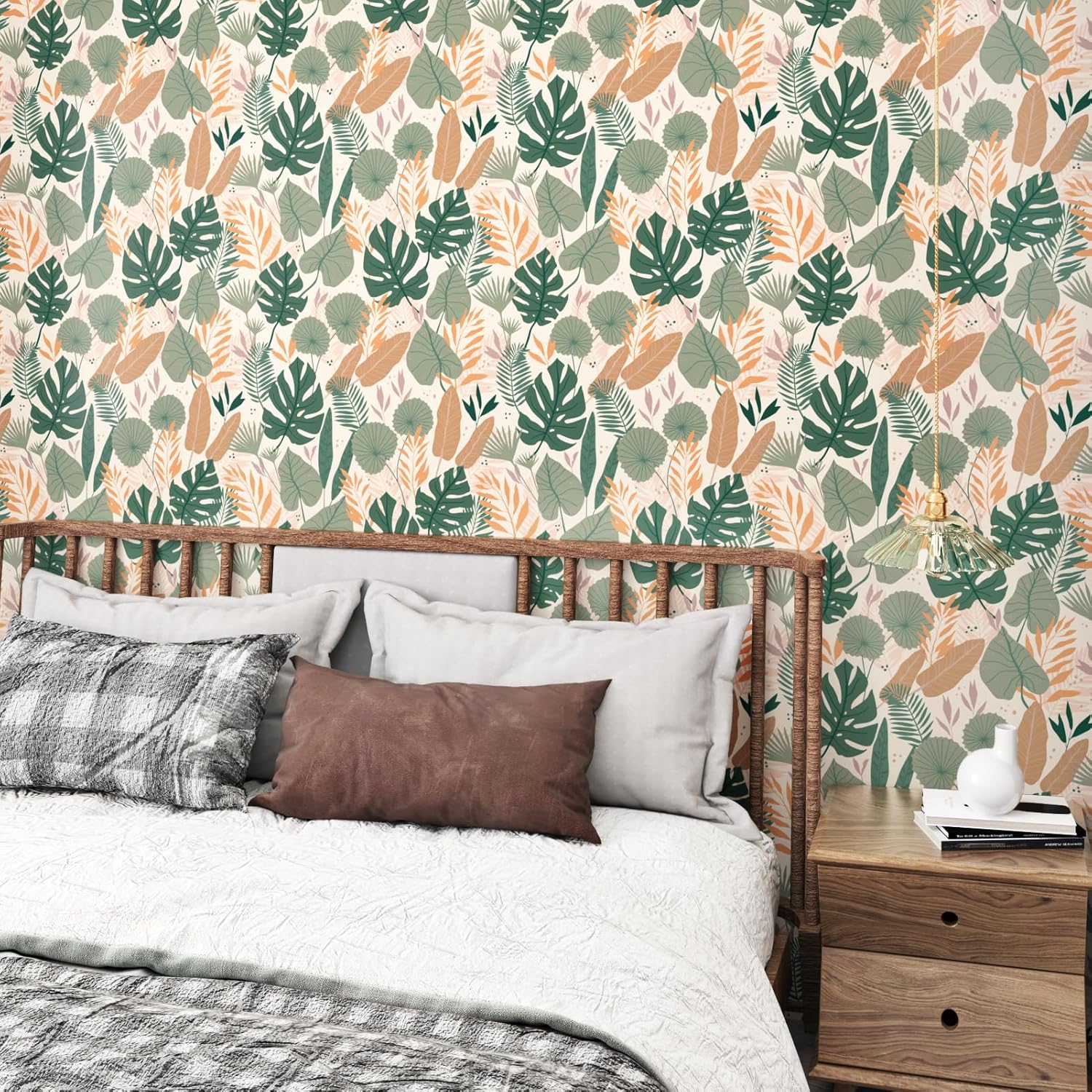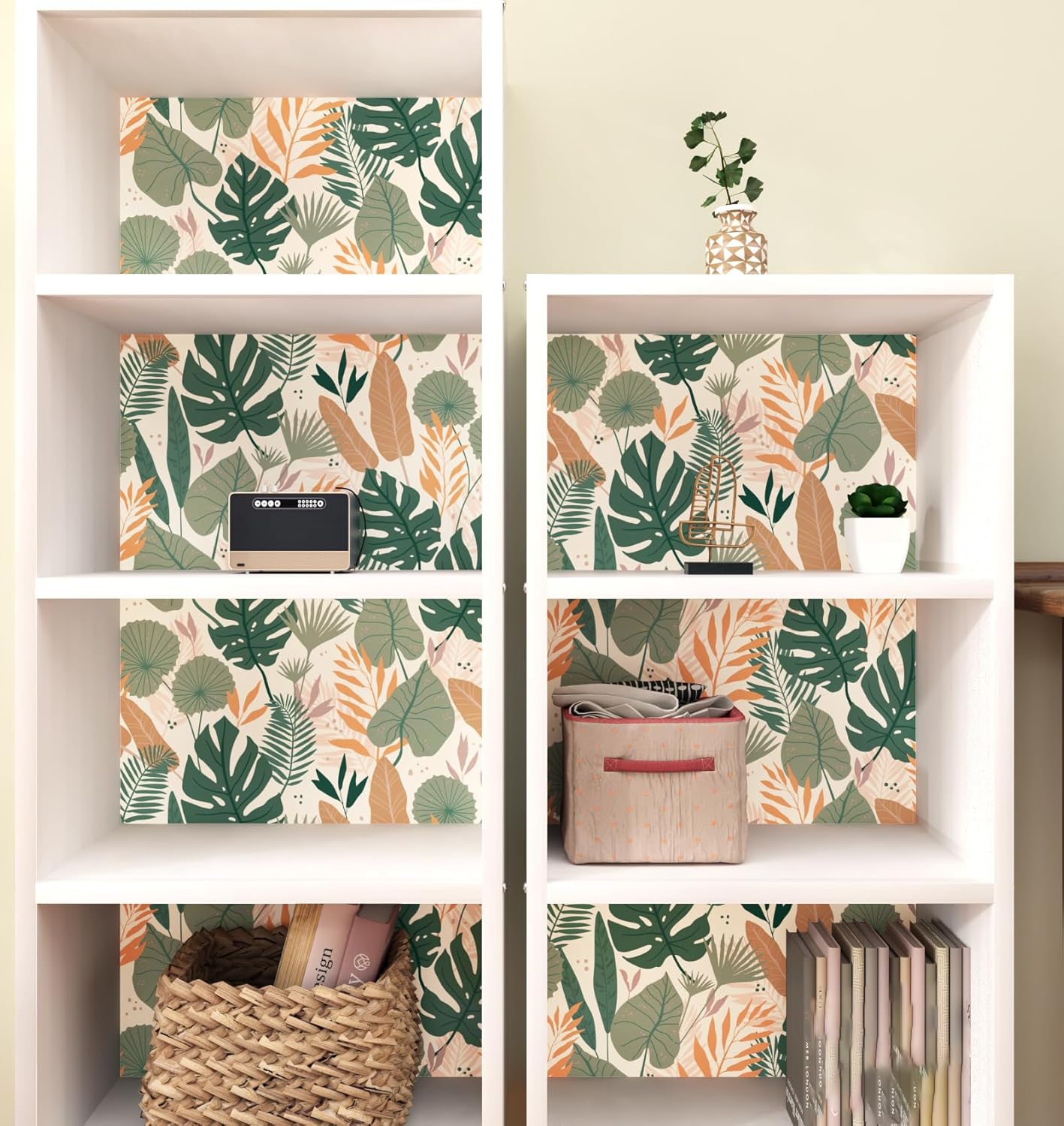 【Leaf Wallpaper】Mutiple Use: Bohemian wallpaper can decorate walls and furniture. Plant wallpaper is great for walls, bedroom, bathroom, living room, apartment, kitchen, laundry, countertops, cabinets, drawers, hallway, nursery, stair risers, pantry, girls kids room, bookcases, furniture, closet, school, classroom, locker, TV backgrounds, desktop, and more.