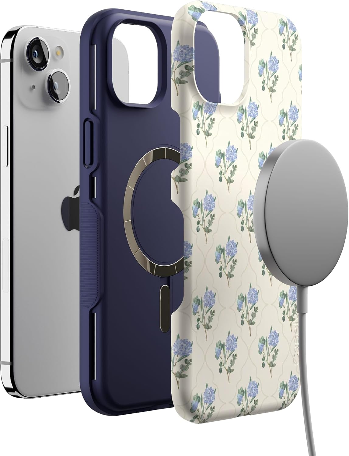 Bring timeless charm to your phone with the Vintage Garden | Blue Hydrangea Case. Delicate blue hydrangeas bloom across a soft cream background in a classic, wallpaper-inspired pattern. Designed with both style and durability in mind, this case is made with Bold protection and MagSafe compatibility for effortless charging. Whether you’re a floral fan or vintage aesthetic lover, this case adds a graceful touch to your everyday carry.