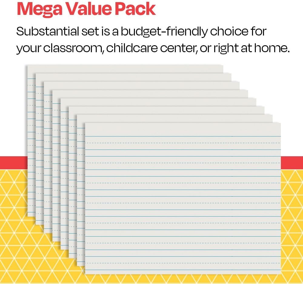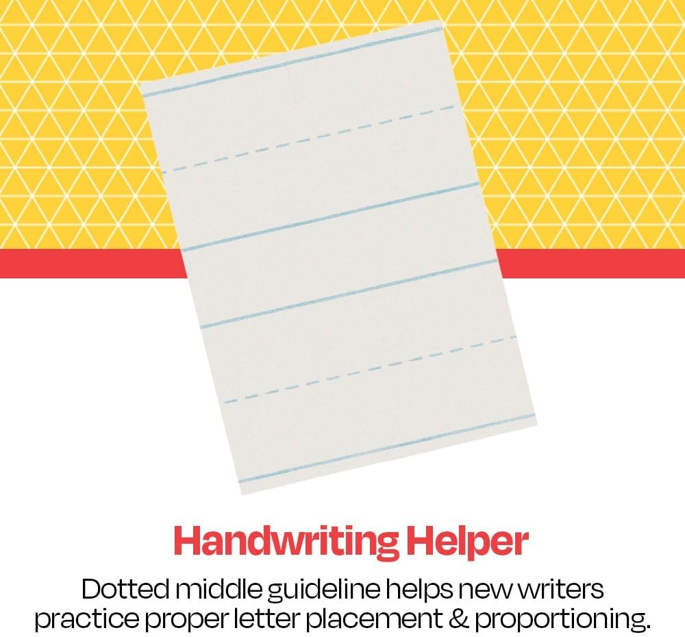 This School Smart paper is ruled on both sides and has a 3/4 inch ruling, a 3/8 inch broken midline, and a 3/8 inch skip space that offers room for descenders. This style paper is ideal for 2nd grade or any emerging writers. The paper comes with 500 sheets per pack. Download School Smart Ruled Paper Guide