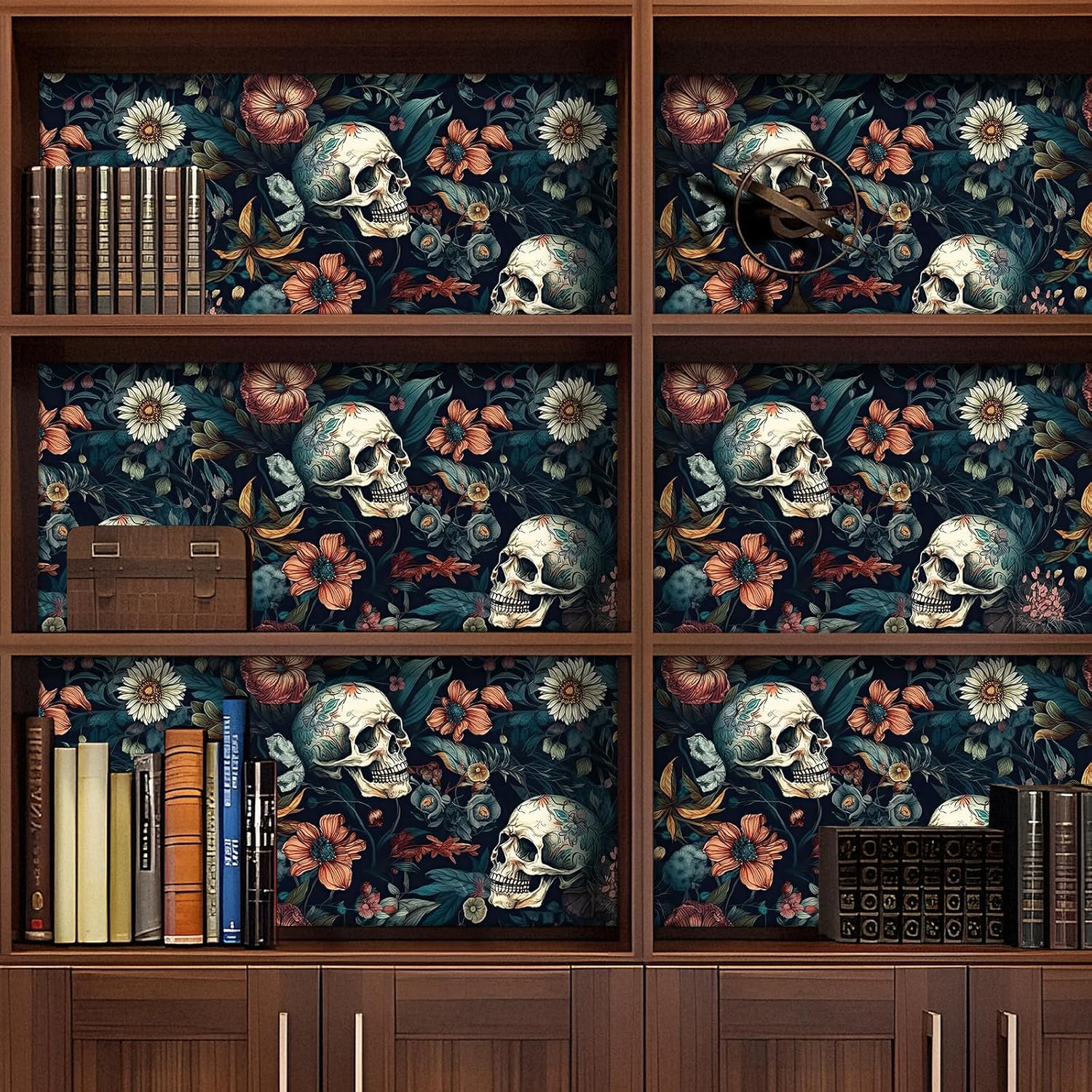 🎃𝐒𝐤𝐮𝐥𝐥 𝐅𝐥𝐨𝐫𝐚𝐥 𝐖𝐚𝐥𝐥𝐩𝐚𝐩𝐞𝐫: Black blue gothic skulls floral wallpaper peel and stick wallpaper can be used for smooth, dry and clean surface. Such as accent wall, bedroom walls, living room, doors, halloween wall decor, window, bathroom, ceiling, laundry room, apartment, drawers, dresser, shelves, vanity, desk, table, kitchen, cabinets, countertops, hallway, nursery, dollhouse, preppy room, pantry, dorm, girls room, kids room, boys room, backsplash, cubicle, furniture, closet, school, classroom, locker, bulletin board paper, vinyl wrap and so on.