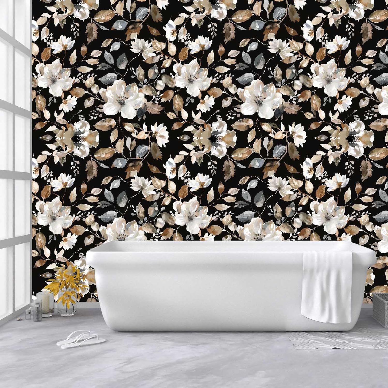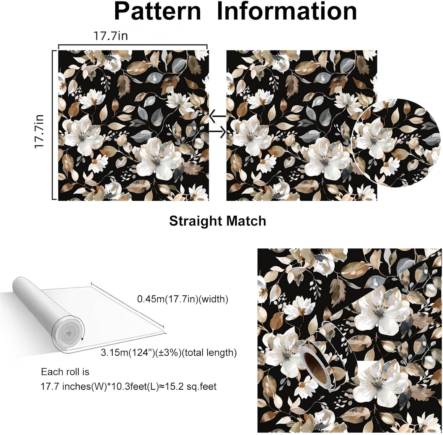Black floral wallpaper: This dark floral wallpaper can be used in a variety of settings such as living rooms, bathrooms, bedrooms, laundry rooms, cabinets, and cafes, and it’s perfect for DIY projects. our wallpaper is waterproof and dirt repellent,Adapts to any scenario