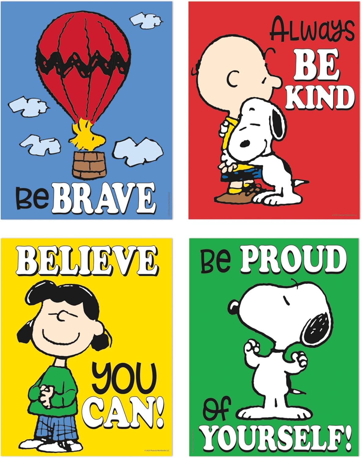 Customers find these classroom posters super cute and appreciate them as a great addition to their decor, particularly noting they’re perfect for Snoopy-themed classrooms. The posters feature bright colors, and customers like their size, with one mentioning they work well as framed art. They find the posters inspiring, with one customer specifically noting their positive affirmations.