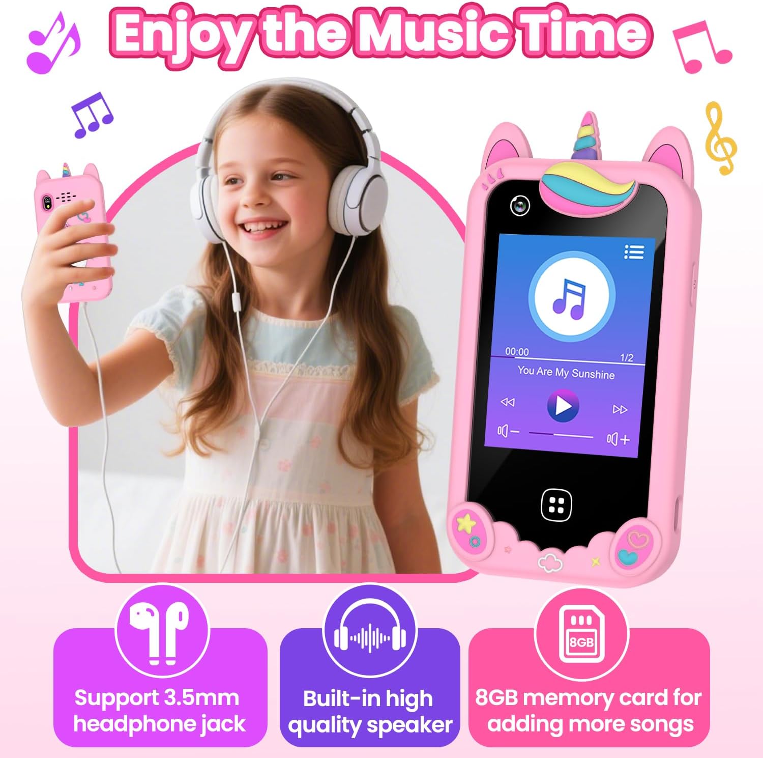 Kids Smart Phone for Girls Ages 3-8, Toy Cell Phone for Kids, Christmas Birthday Gifts for Girls, Toddler Learning Play Toy Phone with Touchscreen, Dual Camera, Game, Music, Story, 8GB SD Card