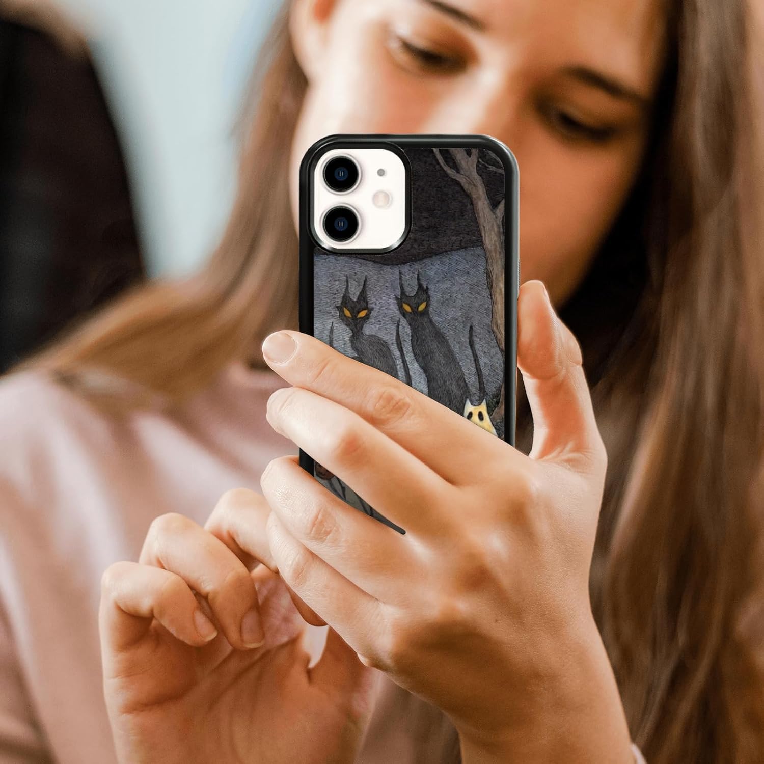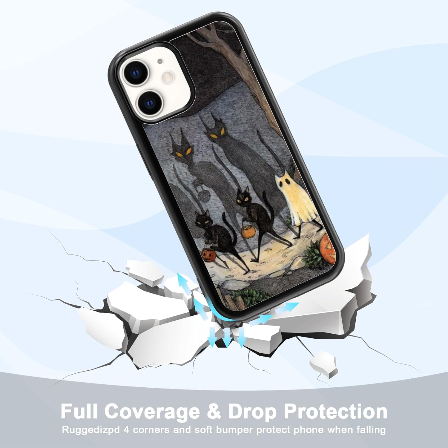 Customers find the phone case aesthetically pleasing with its glossy shine and clear design, while also appreciating its well-made construction, good fit, durability, and textured grip that feels great to hold. They consider it good value for money and like the vintage Halloween theme, with one customer particularly enjoying the cat with book scene. The phone protection receives mixed feedback.