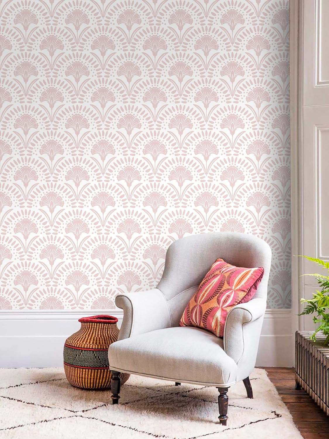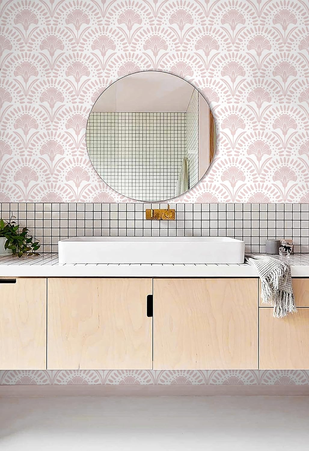 Bohemian-Modern Fusion Design:White and pink floral wallpaper seamlessly combines bohemian charm with modern aesthetics. Large, vibrant flowers are artfully stitched together, complemented by delicate lines that elevate the pattern’s visual appeal, making it a statement piece for any room.