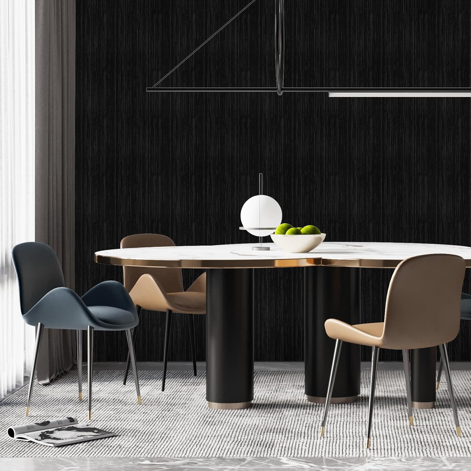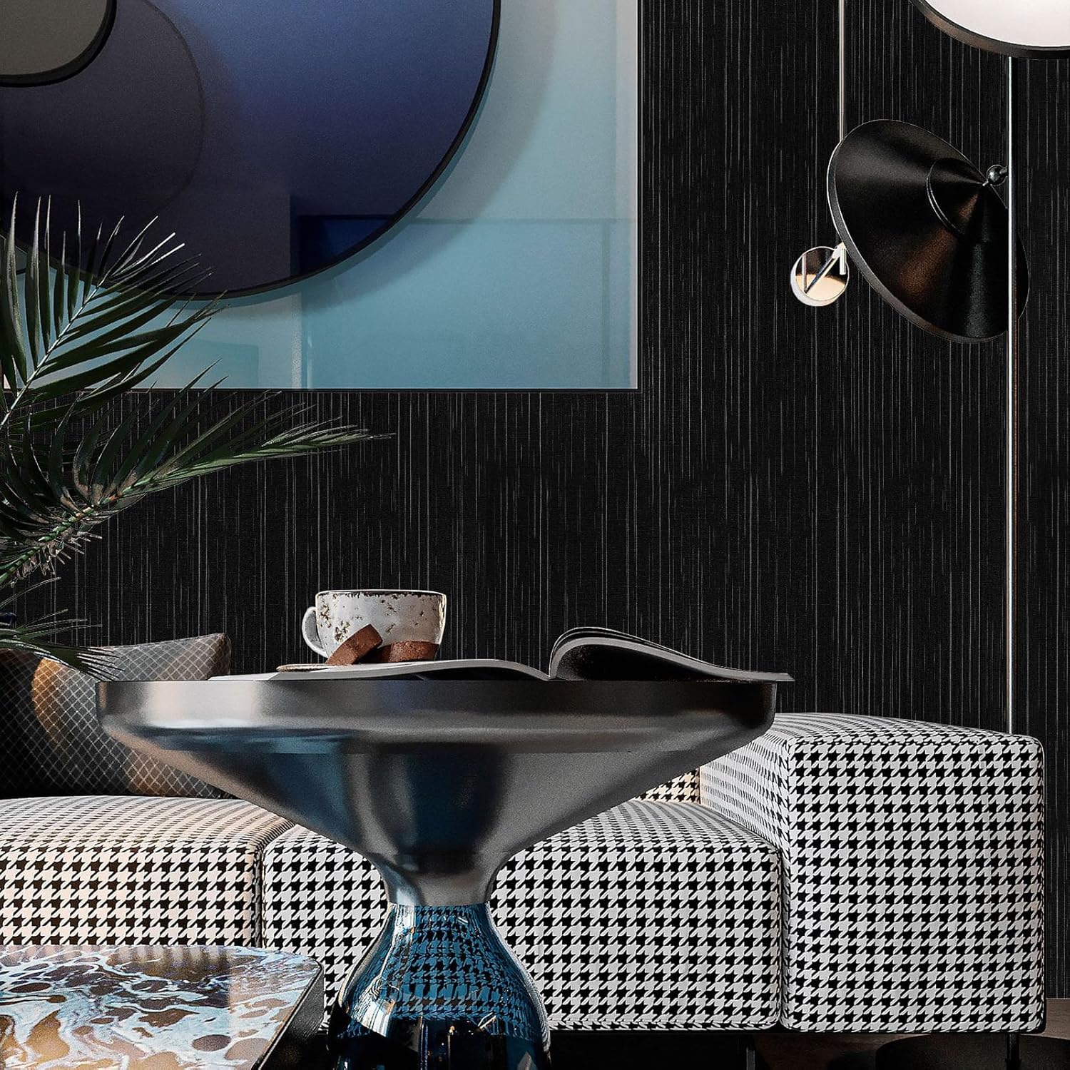 【Realistic textured design】- This peel and stick grasscloth wallpaper is made of vinyl. Which surface is a faux grasscloth texture. The black base color of this grasscloth peel and stick wallpaper with silver fine line pattern makes the black contact paper more vintage and exquisite.