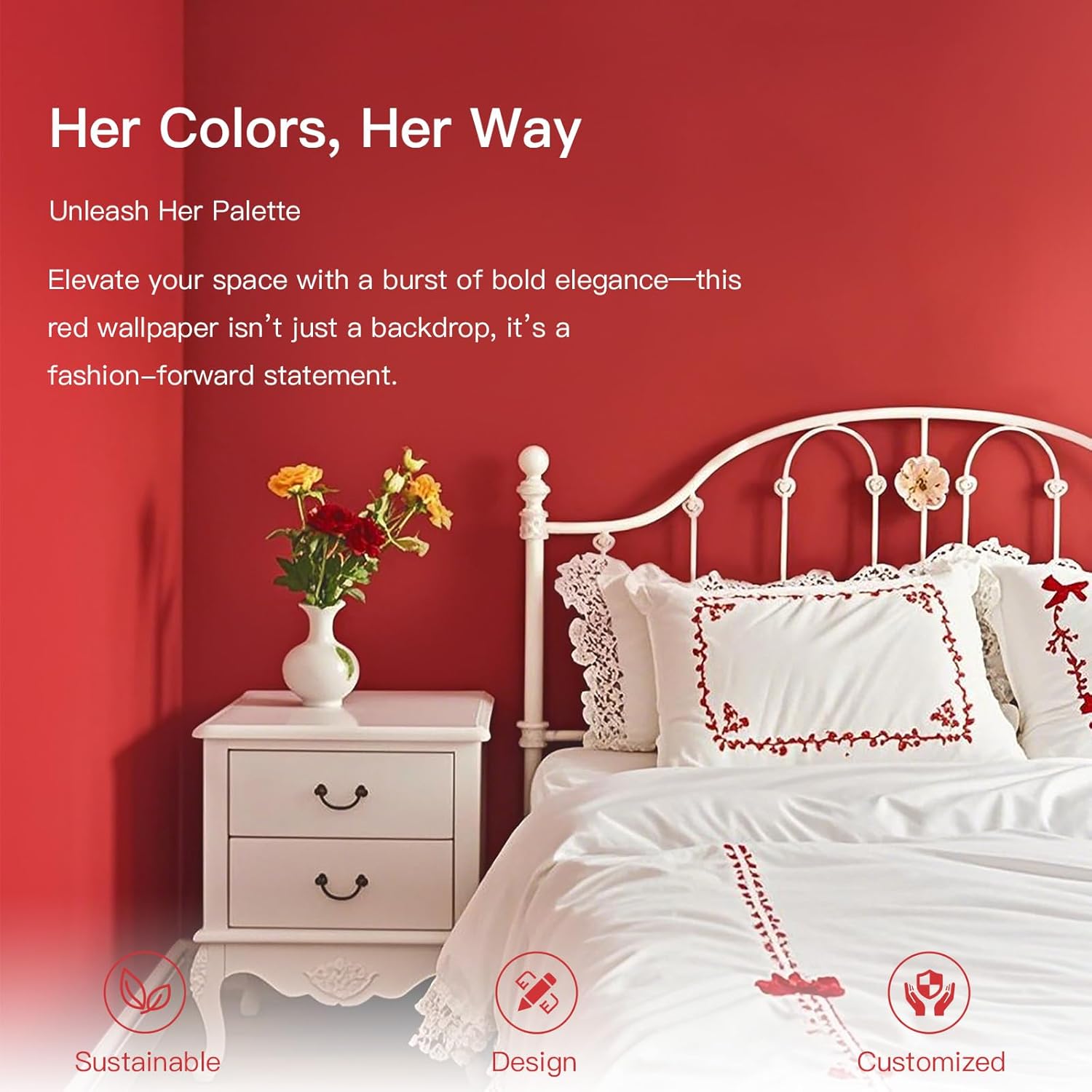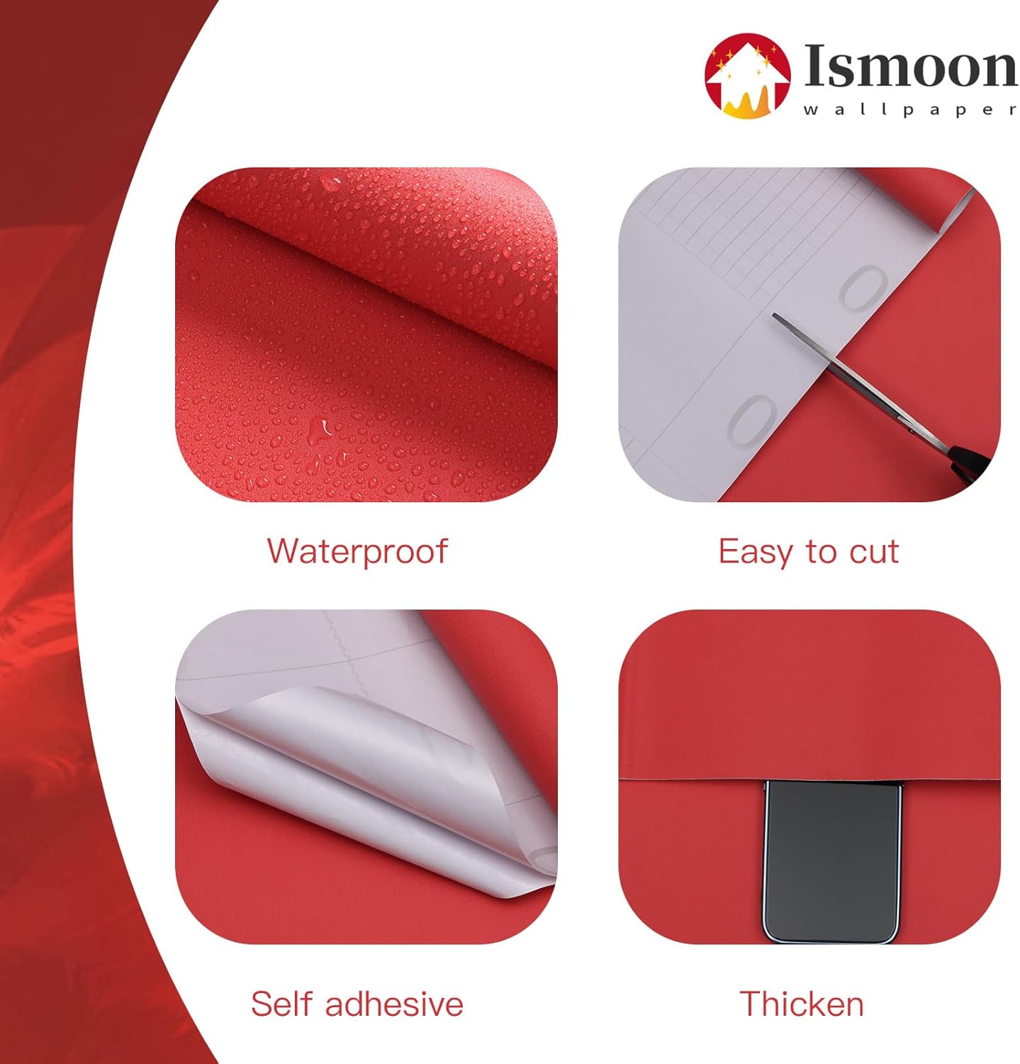FEATURE—The red peel and stick wallpaper is self-adhesive, waterproof, removable, easy to clean and easy to paste.