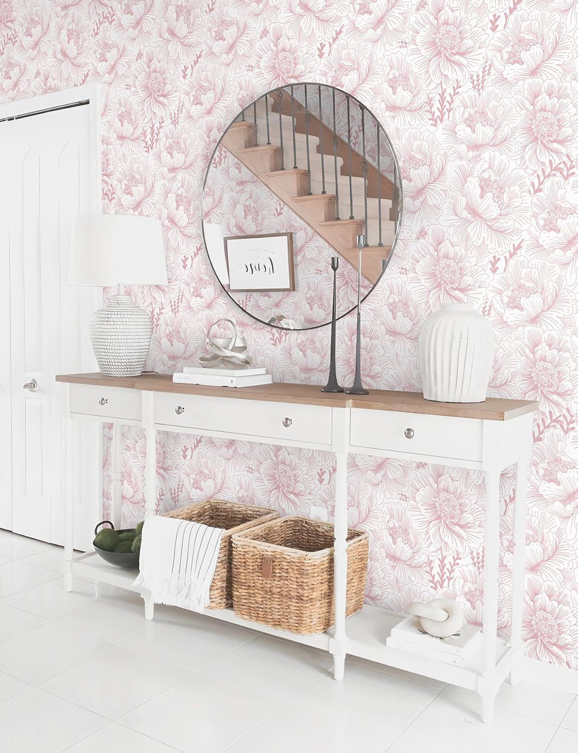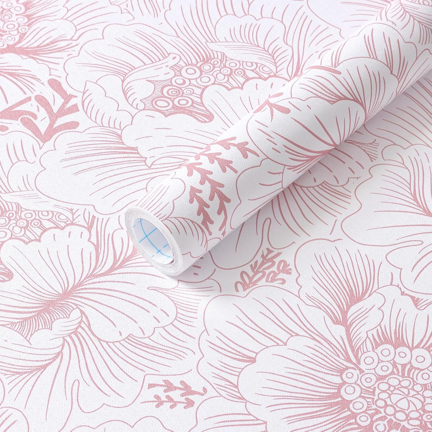 Floral Peel and Stick Wallpaper Boho Pink and White Contact Paper for Cabinets ModernFloral Peel and Stick Wallpaper Boho Pink and White Contact Paper for Cabinets Modern