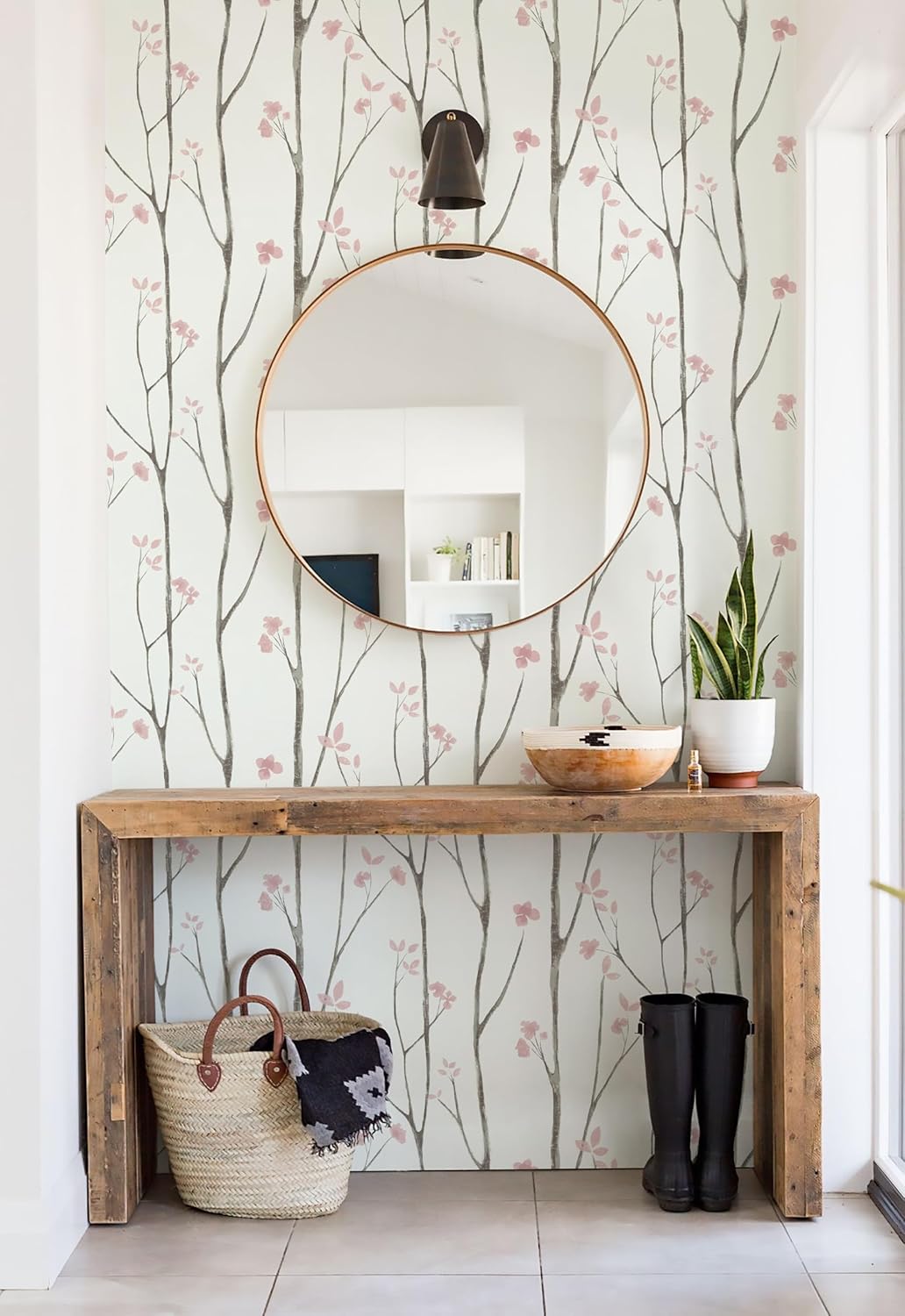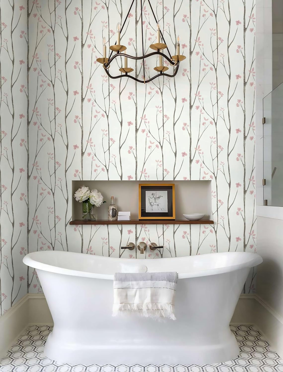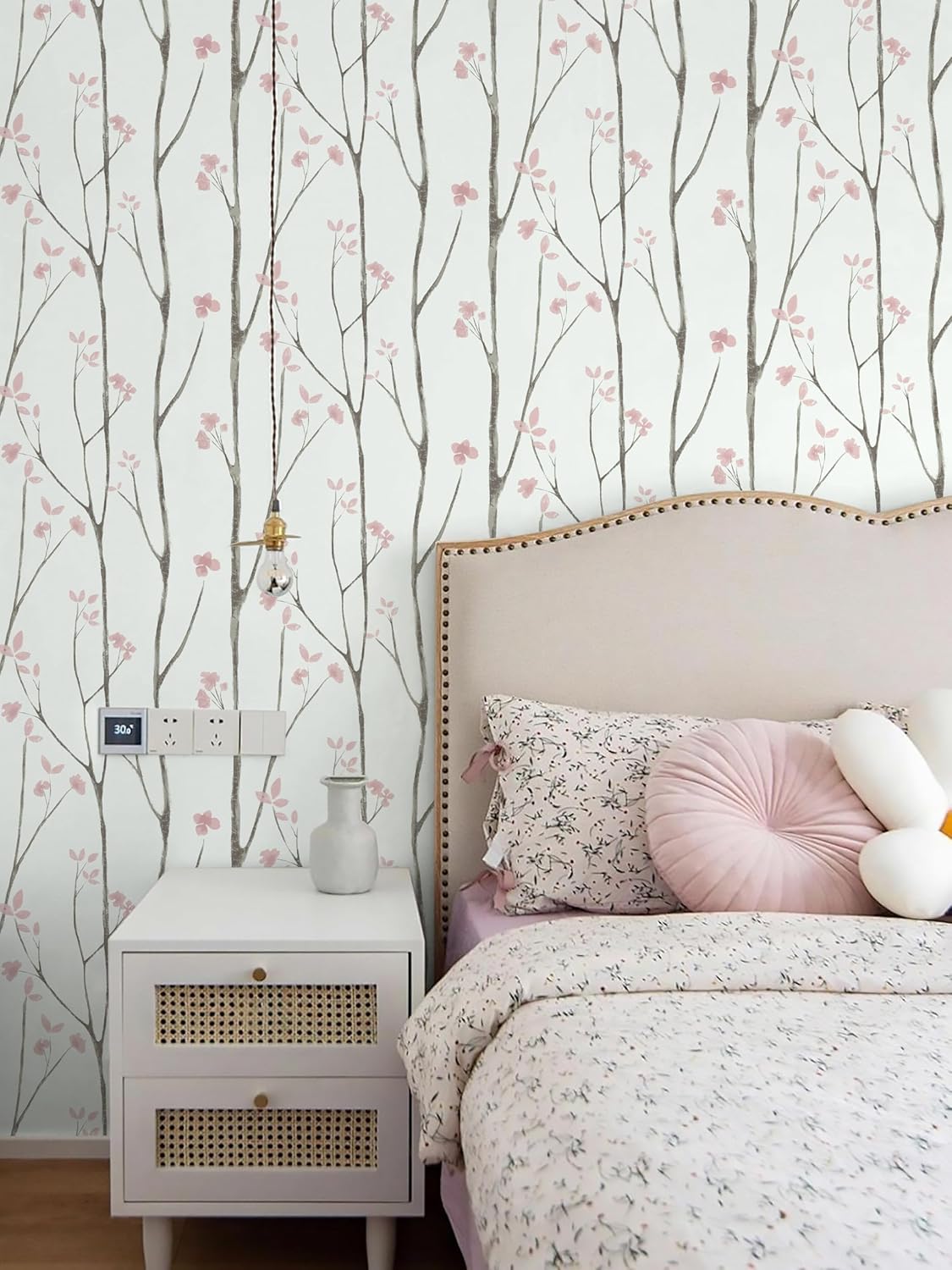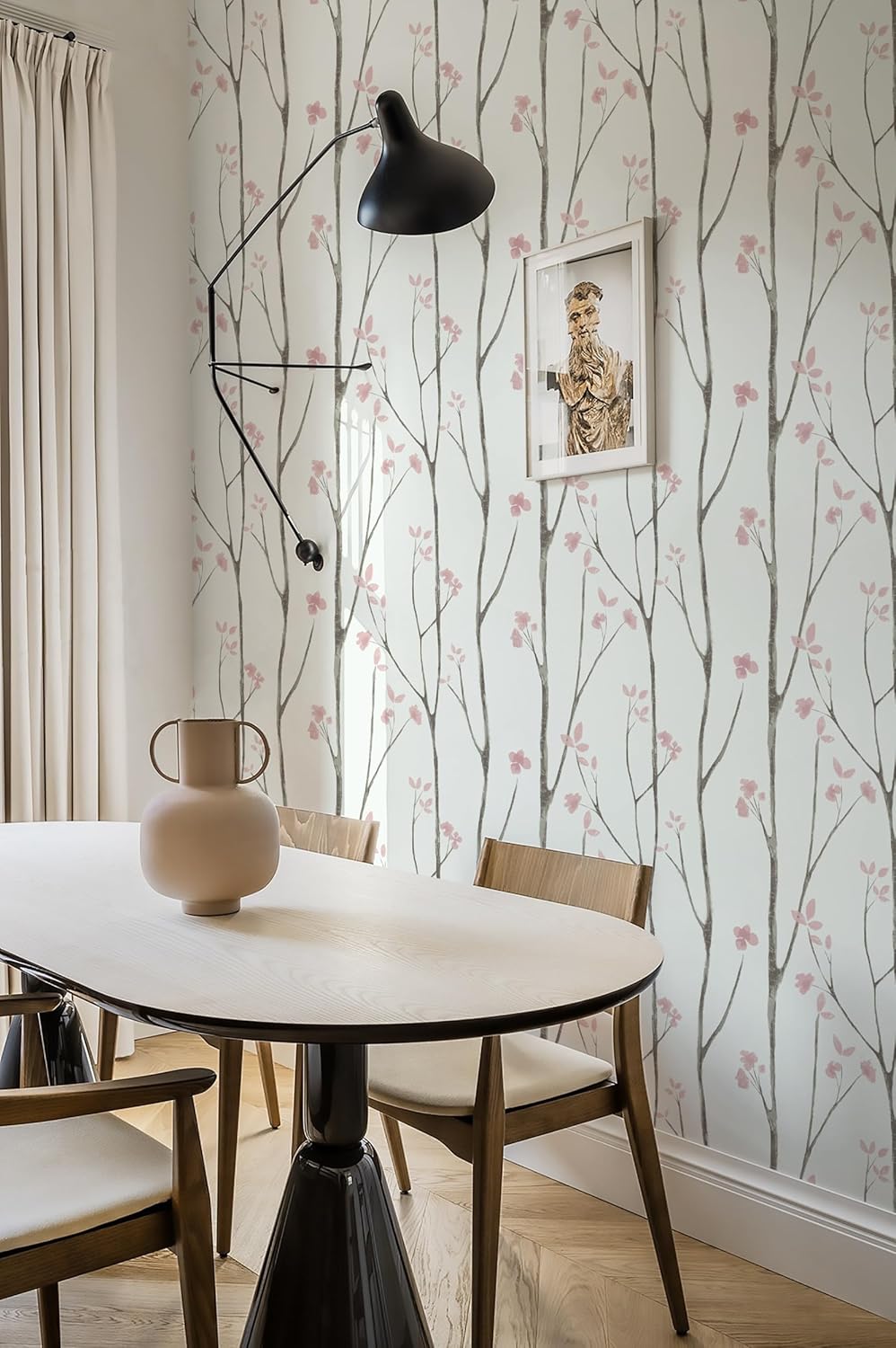 Timeet Floral Wallpaper White and Pink Wall Paper Peel and Stick Modern Contact Paper Removable Self-Adhesive Bedroom Bathroom 16″ x 78.7″