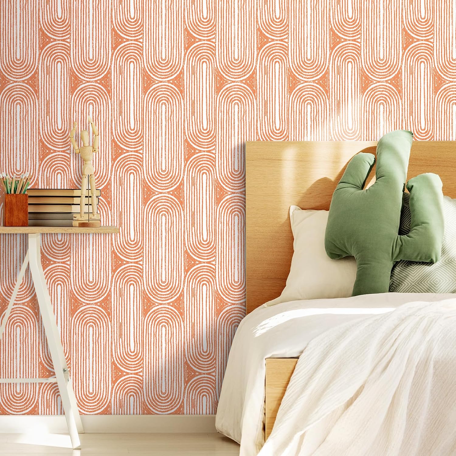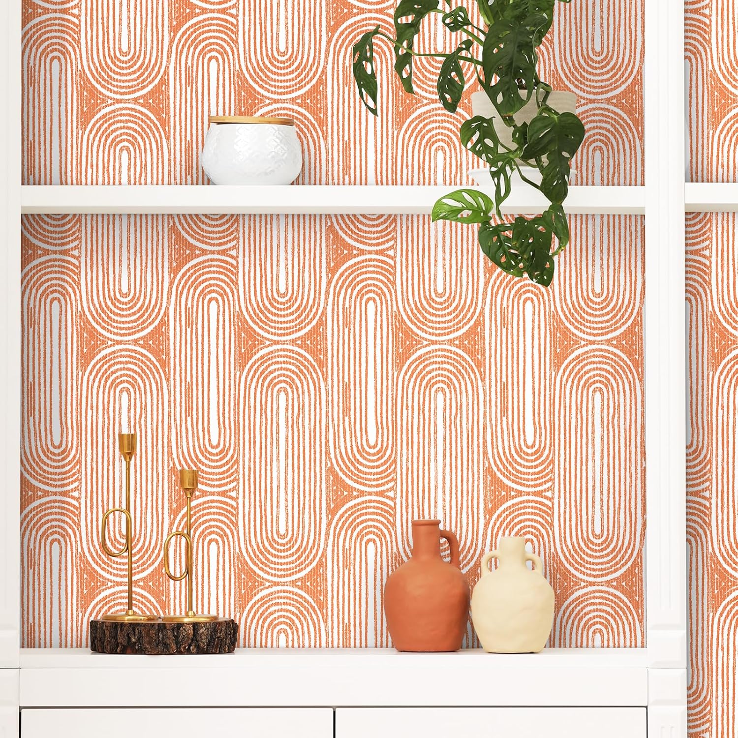 🏠All-PURPOSE: Mid century wallpaper for bathroom, abstract wallpaper for bedroom, funky wallpaper for kitchen, orange color wallpaper for living room, trendy wallpaper for accent wall, abstract wallpaper murals for walls, renter friendly wallpaper for kids, removable wallpaper for renters.