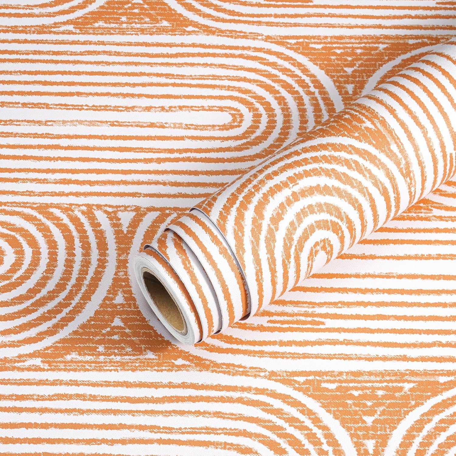 🏠DETAILS: Size 17.5 X78.8 Inch , total 9.57 sq.ft(44.5cmX2m), Self adhesive (no extra glue needed). Made of durable vinyl, orange mid century wallpaper peel and stick, Matte, Waterproof, Removable.