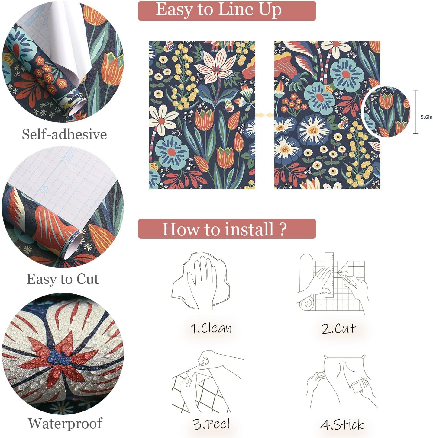 【SIZE&MATERIAL】16.9in X118.1in=13.8sq.ft. Floral wallpaper,upgrading and thickening. Adopt vinyl and the latest removable glue,wallpaper sticks to any smooth, flat ,clean surface,No residue after removal.