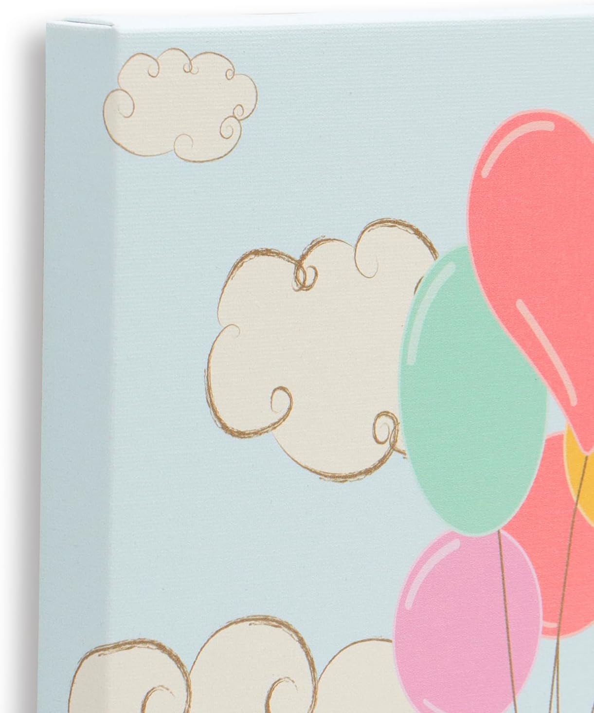Gallery Wrapped Canvas Wall Decor: Each balloon is a burst of joy, rendered in bright hues to create a lively contrast against the tranquil sky. Snoopy floats blissfully among the clouds, his joyful expression capturing the pure bliss of soaring high above the world.