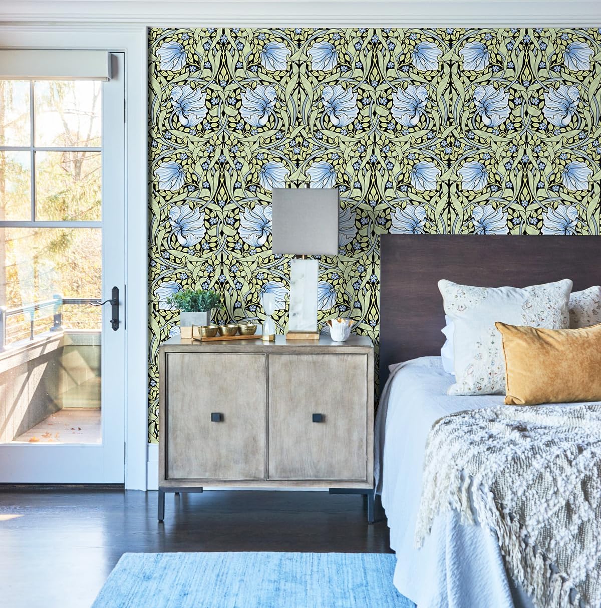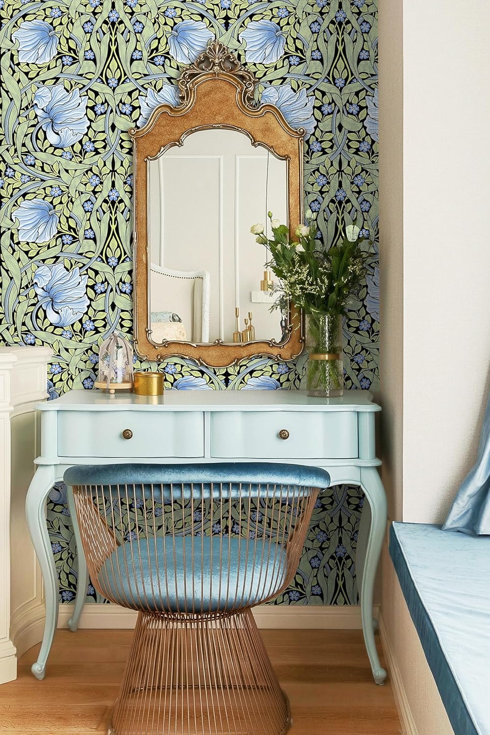 PATTERN & DESIGN: Pattern repeat is H13.9″ x W17.7″ (H35.5cm x W45cm), straight match. Firstly to find the correct pattern repeat and then just directly match without overlap, it’s very easy for beginner who never did peel and stick wallpaper before. This pattern is Morris very classic damask design, If you are a fan of morris or like 70’s mid century wallpaper, please do not miss this classical vintage wallpaper.