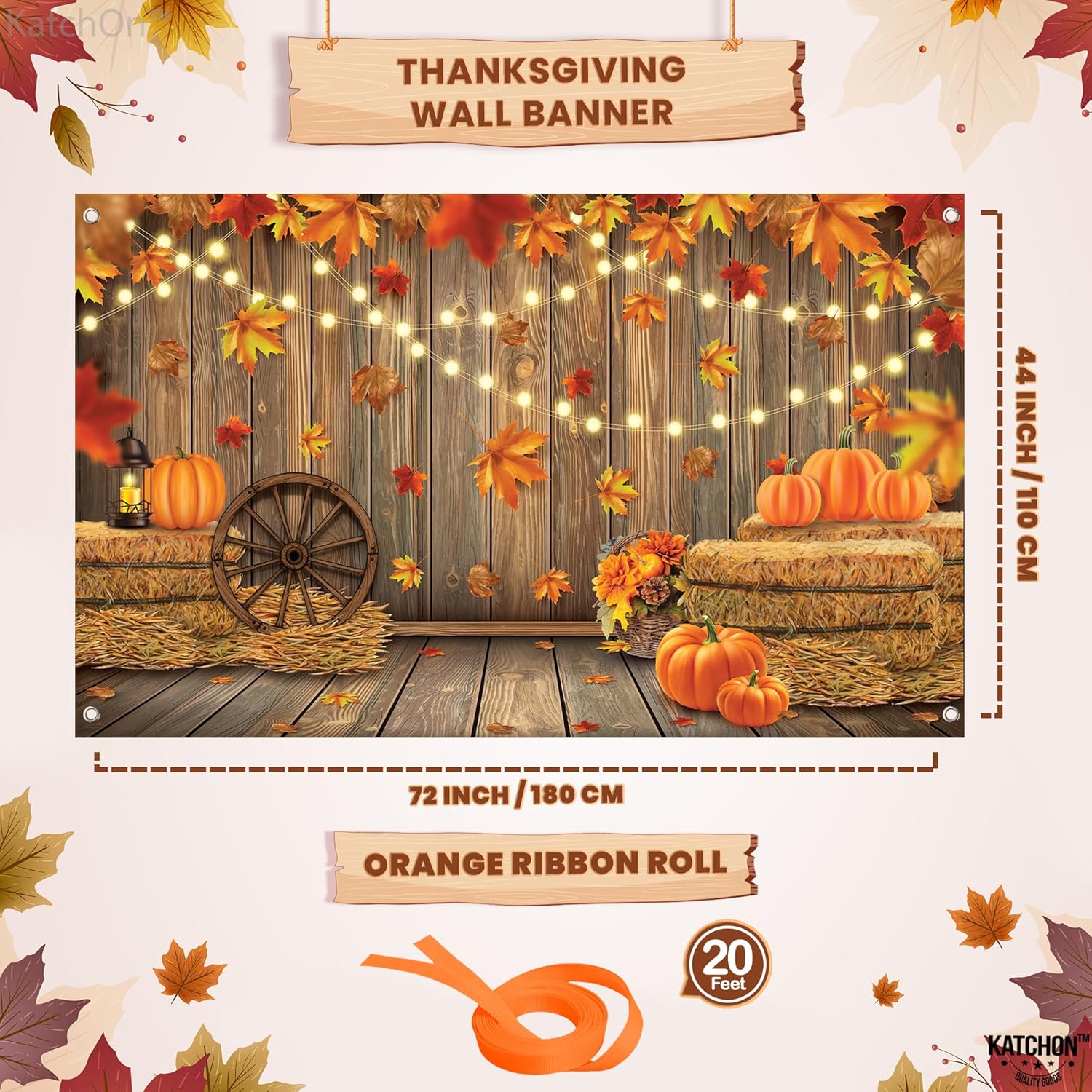 XTRALARGE – 72×44 Inch : Capture the essence of fall with our Xtralarge 72×44 inch thanksgiving wall decor which is ideal for autumn decorations, fall decorations for home, thanksgiving party decorations and many more. These stunning fall backdrops for photography feature pumpkin and barn thanksgiving wall backdrop designs which comes with orange ribbon roll of 20 feet. Elevate your fall festival decorations with our pumpkin patch backdrop and create unforgettable memories.